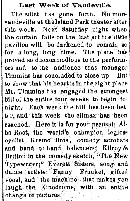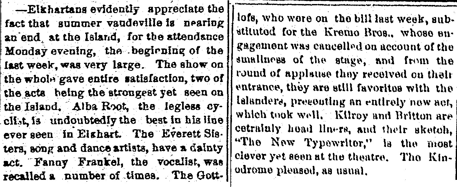 It looks like Elvira was a few months older than Theodor and in 1910, the date of Anastasia's postcard, they both would have been 26. A publication of act's touring in 1910 found in the Weaver attic also shows the relationship of the Kremo family and lists Tony (Anton) and Theodor as nephews. Whatever the relationship was between Elvira and Theodor, Anne Heimericht, Salvano family cyclist, was definitely the winner. I will be back in February to add some more. See you then.