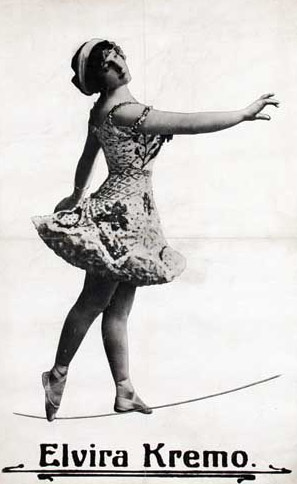 About the Kremo Family A good article concerning the Kremo family was found on a website about the town of Groß Koris, Germany. The web page and article are in German, however. I used a translation program and did what I could to get it into English. The father of the family, Josef Kremo (1854-1917), left home at the age of ten years to go into variety and the circus. At the age of eleven he began training with Johann Karl Schaffer, in Vienna, Austria. He lived with Schäffer and his family during the entire apprenticeship. Schaffer treated Josef Kremo as his own son. In 1873 he left the Schaffer family on good terms. In the following years he worked in various ways as an artist. In 1880 he married Franziska Allinger (1858 to 1940), a famous equestrian. The marriage took the Kremos to great heights in the show business world. The Kremos had thirteen children in the years between 1881 and 1897. The children icluded, in order of birth, Sylvester, Karl, Elvira "Ella", Karolina "Lina", Eugenie, Mark, Franziska, twins Victor and Leon, Siegfried, , one of whom died while very young. The children were at an early stage made familiar with the show business life. It is thought that by the age of four the Kremo children were already accomplished acrobats, doing cartwheels, dancing, hand and headstands, as well as stilt walking. As their artistic skills developed, they were included in the programs. It is therefore not surprising that ten of the twelve Kremo children pursued careers as a performing artists. By 1894, the Kremotruppe Ikarischen (Kremo Icarists) were on tour with an act in which one acrobat lay on his back while juggling their partner through the air. One of the sons was able to do a dangerous triple jump from the seat of the foot. Their number "Stilt walking on the skyline" was a favorite in the circus story of the Kremo family. Josef Kremo also worked "high in the air" as a tightrope and trapeze, and he was also a versatile tumbler and contortionist. Josef Kremo died on December 26, 1917 in Groß Köris, after having been confined to a wheelchair for a few years due to illness. The Familientruppe Kremos dissolved in 1915. Several of the Kremo children thereafter started their own artistic careers. Karolina Kremo (1885-1945), was first known with the presentation "Kremolina and Partner". She worked with her brothers Franz and Otto Kremo in of the number "La Kremolina and Darras" and continued the tradition of the brothers and sisters with the Darras Tanzduo "Kremolina & Darras". In 1926 Otto married Karolina Kremo Muller-Darras . They lived together at the "Villa Linerl" (now Patzerstrasse 24). The wrought-iron entrance gate to this Villa today still bears the inscription "Kremolina & Darras". Elvira Kremo (1884-1973) began before the First World War to work as a dancer. Her debut was in 1901 in Graz. In her act she completed the deadly jump on the rope, a jump that only she performed at the time. She married an artistic photographer, Johann Hötzl. Elvira resided up to the time of her death on the Karbuschsee in Groß Köris.. Currently the last representative of the Kremo-Artisten is Kris Kremo. He is a great-grandson of Josef Kremo and son of the famous juggler Bela Kremo. Kris Kremo is married with the Russian ring acrobat Yelena Larkina. He is today one of the most famous jugglers of the world and is known as "King of the Jugglers" and "Gentleman-Jongleur". His trademark is three balls, three hats, and cigar boxes, a virtuoso which he, with great speed, juggles in diverse variations. Kris Kremo was in 1994 in Germany where he visited the home of his ancestors and has reports and anecdotes of people and visited with his relatives still in Groß Köris. continued below |