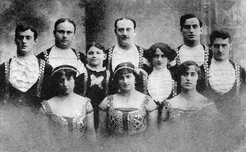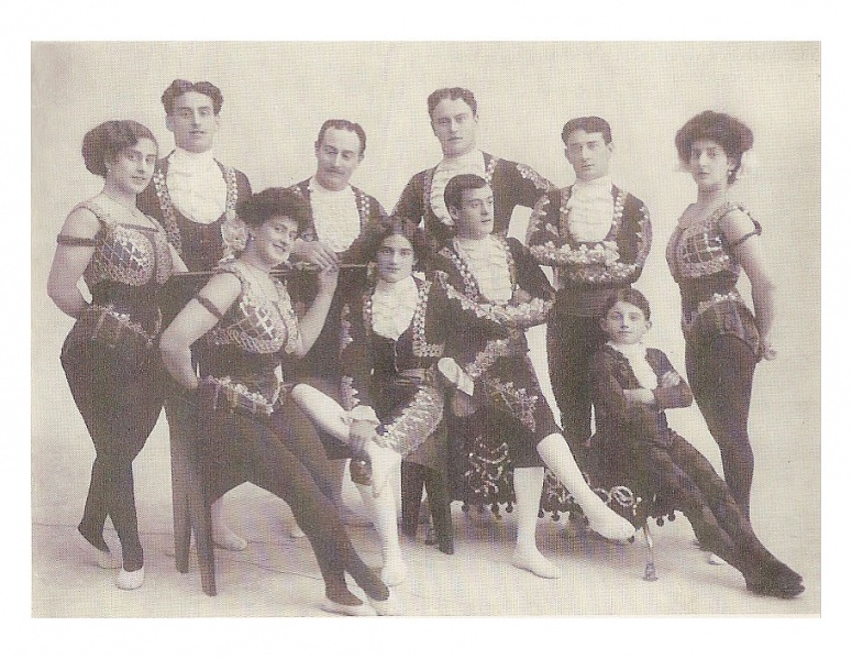 The Kremo Troupe c.1915. Standing, from Left to right: Emma, Léon, Sylvester, Karl, Mark, Elvira; Seated, left to right: Eugénie, Emma, Viktor, Albert. |