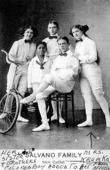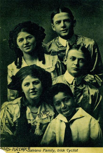 show and took them on the road. They became a headline act. Grandma told stories of travel to all parts of Europe, of spending the summer performing at the Lido in Paris, of beautiful places on the Mediterranean Sea and the highlight of traveling to Russia (yes, they traveled to Russia, Anastasia) to entertain at the palace for the eighth birthday of the Crown Prince Alexei Nikolaevitch, son of the Czar of Russia Nicholas II. Grandma also talked of getting stuck in Russia during one of the revolutions, and losing all their possessions to pay bribes to get back to Germany. When watching bicycle acts with Grandma on TV she would comment "Those people have seats, much easier". I didn't know what grandma was referring to, until I saw a bicycle act at Disney performed with no seats on the bicycles. WOW! The Salvano act adopted a street child in Alexandria, Egypt, and incorporated him into the act. They had a pet lion and a pet monkey also in the act, and grandma talked about turning heads when riding to town with her brother on their chrome motorcycle. continued below |