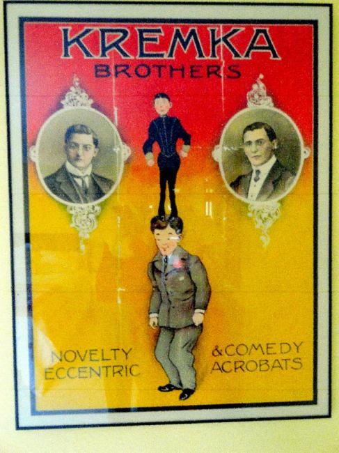 I was amazed by Anastasia's story, and the unlikelihood of events that led through Phil and www.dvrbs.com to us. I asked John how he came about finding the article. He said that he was feeling melancholy about his Mom and Grandma over the holidays and did a search on "Kremka" and found the web-page. Theodor and Postcards Theodor is Theodore Kremka who passed away in 1955 and was married to Anne Heimericht (stage name Anne Salvano) around 1912. Anne lived to be 96 with a strong mind and heart. During her long stays at my home, she entertained us with stories of her travels, the "Kremka Brothers" history and some of the Kremo family. Grandpa sent picture postcards from the places that he traveled around the globe. When grandma Anne died we found a collection of cards that he sent home and a scrapbook of picture posts that he received. My brother-in law has the collection and I have the scrapbook and a number of bogus stocks that grandpa invested in, thus I was able to match the signature. Grandpa was a gambler, but not a good one. He made a lot of pay, but did not bring it home, hence the "BET" referred to in Elvira's postcard fits perfectly. Theodor & Elvira: Theodor is a very interesting man, even though I have never met him, he was very near and dear to my wife. I am hazy on details of his youth, but I know Grandma's stories. Grandpa Kremka was probably trained by the "Kremo's" and was most likely part of their act early in his career. I have seen pictures of Elvira in an old album, and grandma did not think much of Elvira, so I don't think that they were brother and sister, but probably were cousins. The oldest of six children, Grandpa and the next oldest sibling, Anton "Tony" Kremka, worked for a time as part of the Kremo Family Kremo act. Theodore and Tony established their own act, "THE KREMKA BROTHERS", artistic and humorous, eccentric gymnasts. They had mainly a head balancing act with illusions & humor doing what looked to be impossible. They were very successful headliners and performed all over the world. Theodor & The Kremo Family:
