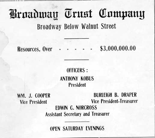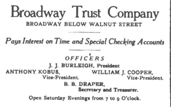The Broadway Trust Company 1915 Advertisement Click on Image to Enlarge |