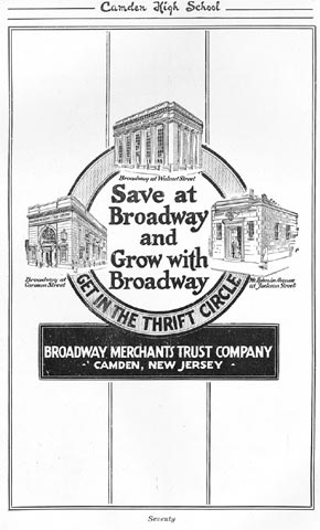 Broadway Trust 1919 Camden High School Purple & Gold Yearbook Ad |