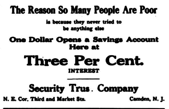 Security Trust Company had opened branches in Gloucester City and Cape May NJ by July of 1926 |