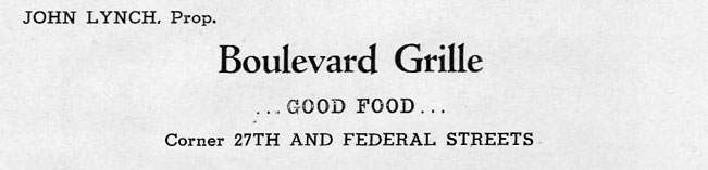 Anna Lingsch Howell operated a saloon at the time of the 1920 Census at 2 North 27th Street. A liquor license was obtained after Prohibition was repealed, and John J. and Mary Lynch were operating the Boulevard Grille as early as 1943. The Lynch family was still operating the bar as late as 1977. By 1989 a new owner named Freddy had purchased the establishment, which remains open as of September 2003 as Freddy's. |