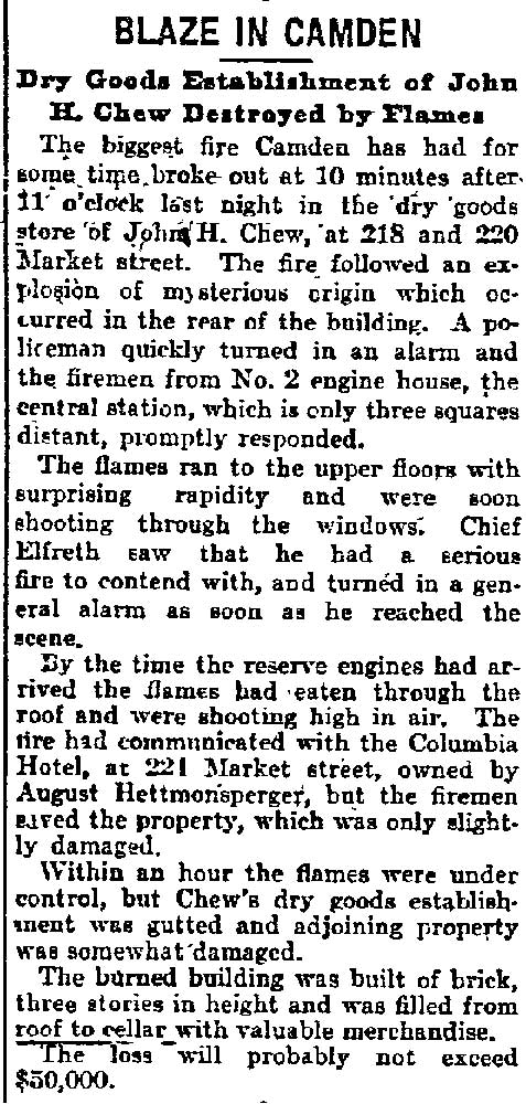 Samuel S. Elfreth - John H. Chew - August Hettmansperger - Columbia Hotel - Market Street |