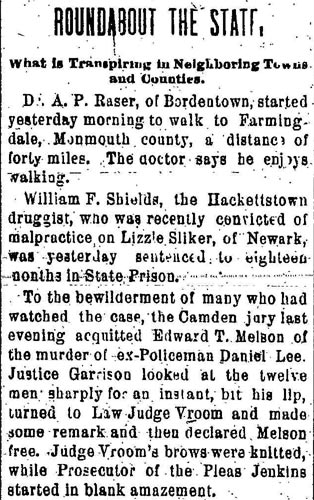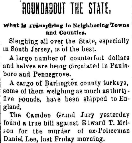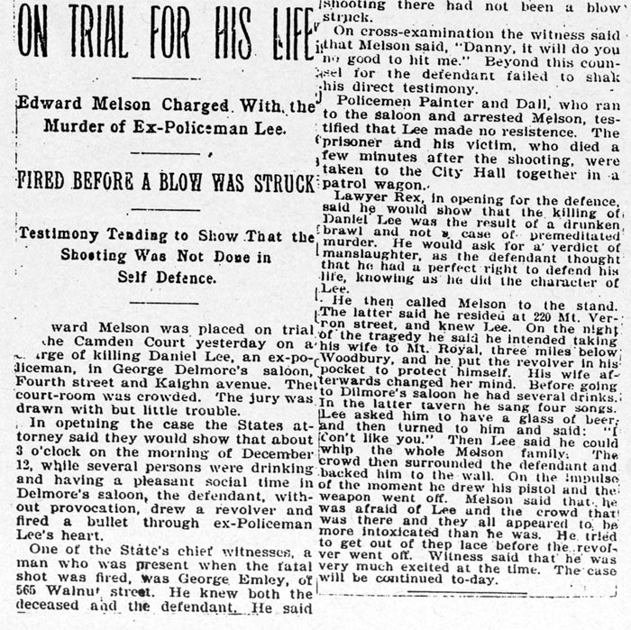 GEORGE DILMORE SR. operated a saloon at 339-341 Kaighn Avenue, the corner of South 4th Street and Kaighn Avenues in the 1890s and 1910s. He fist appears in Camden City Directories in 1894. Directories indicate that he operated his business at 341 Kaighn Avenue while making his residence at 339 Kaighn. He also operated a bottling business during this period. In December of 1896 the saloon came to the attention of the police and newspapers when a former policeman patronizing the bar, Daniel Lee, was shot and killed by another patron, Edward Melson. Both men had been drinking at the time. Despite numerous witnesses, Melson was acquitted of the crime when tried in January of 1897, much to the apparent disbelief of Prosecutor Wilson Jenkins, Law Judge G.D.W. Vrooom, and Associate New Jersey Supreme Court Justice Charles Grant Garrison. George Dilmore successfully operated his business on Kaighn Avenue through at least 1906. By 1910 he had relocated to 531 Market Street in the heart of downtown Camden, a stone's throw from the Camden County Courthouse, where he remained in business though at least 1914. The bar at 341 Kaighn Avenue was acquired by the Palese family by 1910. The building was not used as a bar once Prohibition was enacted. By 1947 Camden Bar and Restaurant Supply was operating at the address. The building still stands today, in use by a non-profit agency in Camden. One of George Dilmore's sons, William M. Dilmore, served as the City of Camden's Purchasing Agent. |