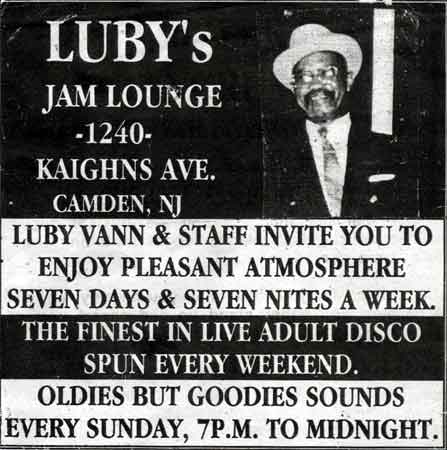 The bar at 1240 Kaighn Avenue dates back to at least 1918, when James P. Daly was the saloonkeeper. James Daly lived in the large house next door at 1236 Kaighn with his wife Lillian and their children. When James P. Daly passed away his son James F. Daly took over the bar. The Daly family ran the bar until at least 1947. The bar was known alternately as the Parkside Tavern and/or as Daly's Grille during this period. The bar apparently changed hands in the 1950s. The 1956 New Jersey Bell Telephone Directory gives the name as Kaighns Bar, while the 1959 edition lists the establishment as the Public Bar. The 1966 Bell Telephone Directory does not list the business at all. By the late 1970s Luby Vann and his business partner, a woman named Beverly, had bought the bar. Luby Vann had also bought the old Daly house at 136 Kaighn as well. The bar was known as Luby V and Bev's Jam Lounge until the early 1990s, when Luby Vann bought out Bev's interest in the tavern. The Jam Lounge bar staff remained virtually unchanged from the 1980s through early 2003, with Tonya tending bar in the evenings, and Gloria 'Little Bits' Gibson serving drinks Tuesdays through Saturdays during the day. Sadly, Little Bits passed away in February of 2003. |