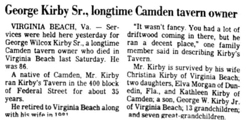 KIRBY'S TAVERN stood at 419 Federal Street, across the Street from the Pubic Service building, which became the Camden Free Public Library in the 1980s. |