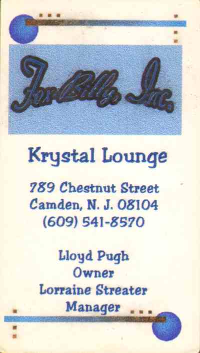 789 Chestnut Street apparently was a bar before Prohibition. In 1887 and 1888 Philip Barr is listed in the Camden City Directory as operating a saloon at this address. The 1908 directory shows a John A. Gorman, and the 1918-1919 directory reveals that Walter D. Leonard was the proprietor at that time. The bar was owned and operated for many years by Max Weisfeld, a Jewish immigrant from Russia, who had come to America in 1903 and had settled on Kaighn Avenue by 1920, operating a grocery store at the time of the census. By 1931 he had established himself at 789 Chestnut Street, where he operated the bar, selling near beer. When Prohibition was repealed in 1933, Max Weisfeld obtained a liquor license. He would run the bar until his death in 1942. The Weisfeld family would own and operate the bar, which was known as Weisfeld's Cafe, into the early 1970s. Daughter Sara Weisfeld lived above the bar during this entire period, before moving to Cherry Hill some time after 1970. She passed away in January of 1980. The bar would then change hands at least three times during the 1970s and 1980s. At some point during this time, Camden political figure Theodore "Teddy" Hinson was involved in the bar's ownership. Krystal Lounge was founded in the late 1980s by Betty Sawyer, and named for her infant grand-daughter. She had purchased the bar, which had been previously known in the late 70s and 80s as Mommie's and Just Pals, and completely remodeled the inside. Betty Sawyer hired the best bar staff she could find, put her barpersons in uniform, and set the standard for Camden's bars, a standard that would be held for several years after her death from cancer in early 1992. After Ms. Sawyer passed, the bar was purchased by two partners, Lloyd Pugh and Diane Burnette, who had been Ms. Sawyer's manager, in July of 1992. She hired Phil "Funky White Boy" Casden to play music at the bar on Thursday, Friday, and Sunday nights. Soon Krystal Lounge became known far and wide for its music, and drew a regular crowd from throughout South Jersey, southeastern Pennsylvania, and Delaware. Krystal Lounge was generally recognized in the 1990s as the spot to be for the black over-35 market. Phil Casden would remain at Krystal Lounge through 2002. Krystal Lounge would also gain renown for food, its kitchen for years serving dungeness crabs. While Holmes Lounge in East Camden gained much notoriety for their crabs during this period, Krystal Lounge's trade rivaled theirs during the 1990s. In the late 1990s, Mr. Pugh bought out Ms. Burnette's interest in the bar. Krystal Lounge remains open today, one of the few bars that has survived in South Camden. |