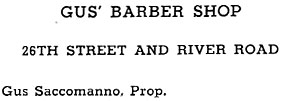 The 1947 Camden City Directory indicates that a bar at 1006-1008 North 24th Street was called Joe Wandy's Chateau. The bar had previously only occupied 1008 and was operated by Adolph Newmeyer, according to the 1931 Camden City Directory, and Hugo Stettnisch, according to the 1929 edition. The bar seems to have been taken down and rebuilt on an adjacent lot, as by 1956 records show it to be located at 1012 North 24th Street. It would appear that the owners of the Crescent Beverage Company bought the property and built a new warehouse adjoining their building on River Road. The photograph below attests to the more recent construction. The bar appears in the 1954 and 1956 Bell Telephone Directories as Al's Cafe, and in 1959 as Steve's Cafe. By 1964 1010-1012 North 24th Street was called the Little Tavern, and it went by this name through 1979. The Little Tavern was owned by Gus Saccomanno, who owned and operated Saccomanno's Barber Shop at 26th and River Road. Gus Saccomanno's father Nicola Saccomanno, ran barber shop on Federal Street for 46 years, until his passing in 1950. The 1982 directory shows the name Gregory's Cafe, by 1985 the bar ceases to be listed in the telephone book. The bar stands vacant today, the roof having collapsed years ago. |