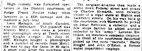 Owned and operated for many years by John MacDougall, Mac's Bar was a fixture from before World War I through at least the fall of 1959 at 839 Market Street. He remained open during Prohibition under a "soft drink" license. When Prohibition was repealed he was granted his beer license on June 30, 1933. |