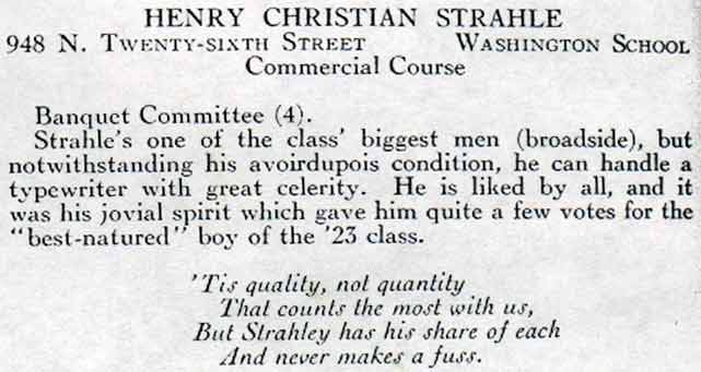 Henry Strahle’s Pavonia House by Henry Strahle was born on September 11, 1875, in Holzheim, Wurttemberg, Germany, the 11th of 13 children of Andreas Strahle and Margarethe Leyrer. He was the first of his immediate family to leave Germany for America, followed subsequently by one brother and two sisters. His German Emigration Passport was issued on 20 September 1890, and stated that he was to travel at the end of October from Holzheim via Antwerp to Philadelphia. He was 15 years old at the time. Like many young Germans of that era he left to avoid conscription into the Army. He traveled alone, under his own name, with very little money. The family in Germany did not appear to be well off, and dreams of striking it rich in America were widespread. His emigration documents state that he was a baker, and list the following personal characteristics: age, 15; height, 1.58 m; stature, slender; face, oval; complexion, healthy; hair, blond; eyebrows, blond; eyes, blue-gray; nose, straight; mouth, regular; cheeks, half round; teeth, good; legs, straight. His first job was as a baker in Haddonfield, earning $2 a week. He later moved to Trenton and married there at the age of 25 (a year after he was naturalized in 1900). He spent his wedding night in the State Prison, which his best man and several friends arranged as a joke. (The warden was a guest at the wedding.) His new bride, Sophia Walz, was still a bit put out by this when she told the story to her granddaughter many years later.