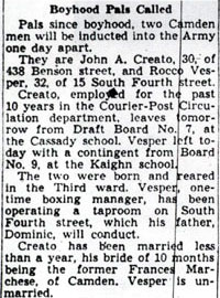 May of 1942, Rocco Vesper and his childhood friend John Creato were