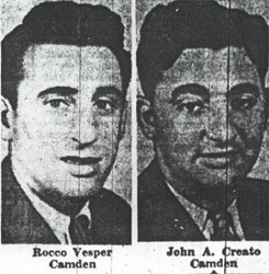 Rocco Vesper was born in Camden NJ on May 9, 1910 to Dominico and Josefina Vesper, one of at least seven children. His mother died shortly before the 1930 Census was taken. The Vesper family resided 326 Mickle Street, two doors away from the famous poet Walt Whitman's home at 330 Mickle, when both the 1920 and 1930 Census were enumerated.. During the 1930s Rocco Vesper pursued a variety of vocations. He managed professional boxers for a time. By 1933 he was the proprietor of a taproom known as Vesper's Cafe, at 15 South 4th Street. In 1933, with Prohibition still in force, this establishment operated under a soft drink license. By the summer of 1936, Rocco's father, Dominico Vesper had taken over the bar. He sold it to Louis Zalewski in 1947. In November of that year, the liquor license was sold and transferred to Samuel Pearl, who opened a liquor store at 31 Mt. Ephraim Avenue which remained in business until around 1990. In