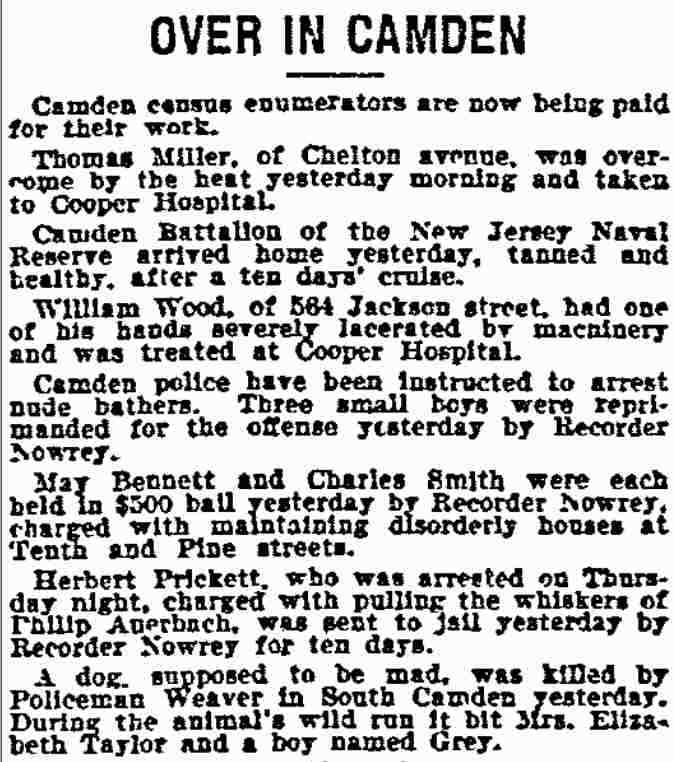 It was about the period when Miss Clara S. Burrough, long principal of the High School and now recovering from an operation in Cooper Hospital, was principal of Fetters that the big change came that the classes were composed largely of children of foreign parentage. Often they did not know a single world of English. Teachers had their problems and Miss Burrough will undoubtedly recall the great task involved in really making the “melting pot” down there in the old school at Third and Mount Vernon Street effective. But she and the valiant corps under here direction tackled it and by the time Miss Burrough was elevated to the principalship of Camden High, a very deserved promotion, by the way, the problem had been totally solved.