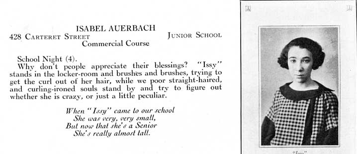Carl Auerbach had gone to Camden High School. When the Jewish student fraternity Sigma Alpha Rho founded its Epsilon chapter at Camden High, on October 12, 1923, the first Sacred Ruler of the Epsilon Chapter was Carl Auerbach. Among those who succeeded him were Norman Heine, George Tartar, Samuel Cohen, and Sylvan Grass. Carl Auerbach's daughter, Carole Saline, like her father a Camden High graduate, is a journalist and best-selling author.