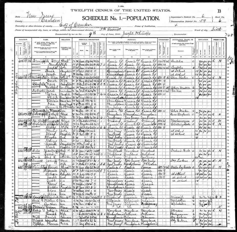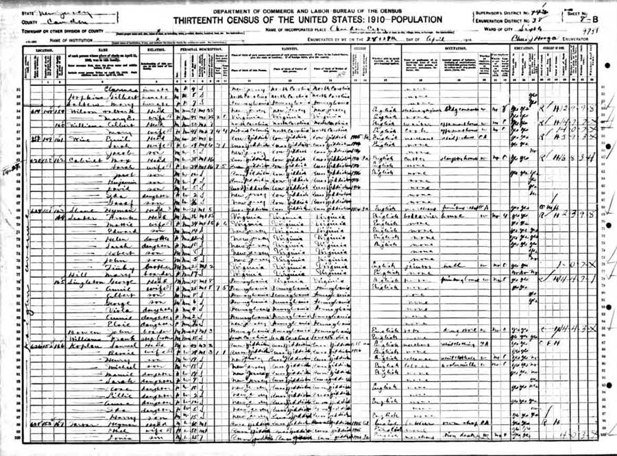 Charles Jordan was tried and acquitted of murdering Sarah Coplein. He reportedly was later sentenced to life in prison for another crime, where he reportedly took his own life. Samuel Coplein remarried. His second wife, Mary, bore him three children by June of 1900, Harry, Annie, and Rosie. The Coplein remained at 626 Kaighn Avenue. Samuel Coplein, who had originally been a dealer in second-hand merchandise, had by 1900 gone into mens clothing. |