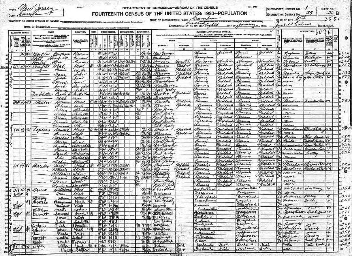 COPLEIN | SAMUEL | 626 Kaighns, Camden | 12 | 15 | 1933 | 65 | Heart attack |