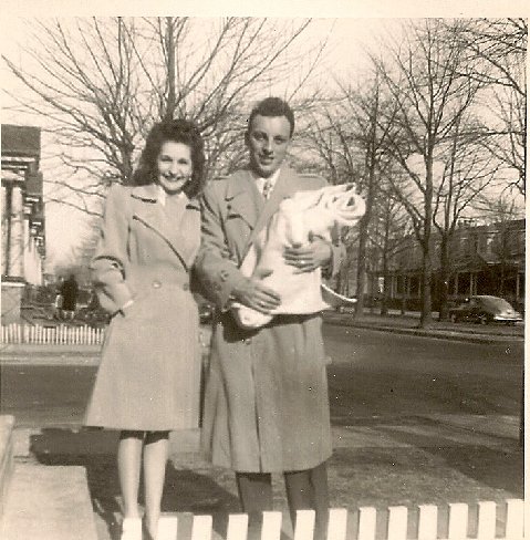 Camden fire fighter Leonard Iannelli, his wife Olga and child. The Iannellis were the previous tenants of the third floor apartment at 1275 Park Boulevard before James and Angeline Petrillo moved there. Phot is from about 1945. |