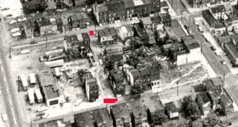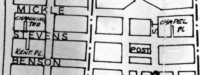 Left: Aerial Photo from 1965. Cleveland Terrace beginning and end marked in red. Below: 1946 Map. Cleveland Terrace is called Kent Place in error. |