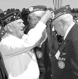 On October 18, 1943 Joseph S. Zippilli was assigned to the 766th Bomb Squadron, 461st Bomb Group, as a gunner and flight engineer, with the rank of Technical Sergeant. He was a member of the 461st Bomb Group's Crew 49. The Group began flying missions from a base in Italy in April of 1944. On the seventh mission, April 13, 1933, his plane, piloted by 2nd Lt. Paul S. Mowery, was damaged and the crew forced to bail out. The mission was to bomb the Duna Tokol Aircraft Components Factory at Budapest, Hungary. On this mission a total of 58 enemy aircraft were seen. Several encounters were experienced, three enemy planes were destroyed and three more claimed as probable. Twin-engine enemy airplanes fired rockets at the formation. Single engine enemy airplanes flew parallel with the Group at a safe distance and radioed headings, altitude, and air speed to their ground installations. Flak over the target was intense, accurate, and heavy. Two bombers were lost over the target. 1st Lt. Charles W. Bauman, flying the deputy lead position in “A” Flight of the second Section, had part of a wing shot off by flak. His plane fell into the plane in the number 4 position of the same flight, which was piloted by 2nd Lt. Paul S. Mowery. A third plane flown by 2nd Lt. Kay B. Steele, which had come off the target with the formation, failed to return to the base. Colonel Glantzberg, who was flying as co-pilot in a plane in the second Section, led a small formation of planes in chasing attacking JU-88s away from this damaged plane. He was unable, however, to stay with the plane because of an undercast. Fifteen planes were damaged over this target. Technical Sergeant Zippilli and eight others of his crew bailed out were captured. “I was assigned a B-24 bomber whose mission was to bomb an airplane manufacturing plant in Budapest, Hungry. Then one of the planes in our formation got hit by anti aircraft fire, lost control of the plane and collided with us. So our officer in charge gave us the order to bail out of our aircraft. The nine of us were sent to Stalag Luft 3, a prison camp in Poland, where we stayed for nine months until the Russians came in. Then we were forced to march to Mousberg, Germany, to be transferred to Stalag 7A, where we were liberated April 29, 1945. In all, we were in captivity for one year and 16 days,” said Zippilli. |