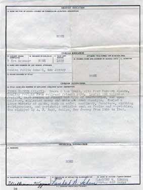 By March 2, 1945, the Division stretched over a 10-mile front, from Hocker Hill on the Saar through Zerf, and Lampaden to Ollmuth. A heavy German attack near Lampaden achieved penetrations, but the line was shortly restored, and on 13 March, spearheading the XX Corps, the 94th broke out of the bridgehead and drove to the Rhine, reaching that river, March 21. Ludwigshafen was taken, March 24, in conjunction with CCA of the 12th Armored Division. The Division then moved by rail and motor to the vicinity of Krefeld, Germany, assuming responsibility, April 3, for containing the west side of the Ruhr pocket from positions along the Rhine. With the reduction of the pocket in mid-April, the Division was assigned military government duties, first in the Krefeld and later in the Dusseldorf areas. During the time William Kiggins was serving in the Army, his wife had relocated to the then relatively new Westfield Acres Public Housing Project on Westfield Avenue in East Camden, renting an apartment at 364 Dudley Avenue. At the end of hostilities, William Kiggins returned to his original military of specialty of driving a truck. He served in Europe until November 16, 1945 during which time he was transferred to the Troop E of the 38th Cavalry Reconnaissance Squadron. He arrived in the United States on November 27, 1945, and was sent to Fort Monmouth NJ with that unit. He received an honorable discharge on December 4, 1945 after serving 2 years, 2 months, and 29 days. He had fought in four major campaigns, Northern France, Ardennes, Rhineland, and Central Europe. Besides the Bronze Star, which was presented to him in a ceremony in late September 1945, he was awarded the European-African-Middle-Eastern campaign ribbon, the Good Conduct Medal, and the Victory Medal. William Kiggins Sr. came home to his wife and son in December of 1945. The Kiggins' were blessed with a daughter, Marylou in the fall of 1946. He stayed in touch with some of his Army comrades, attending a reunion in 1956. |