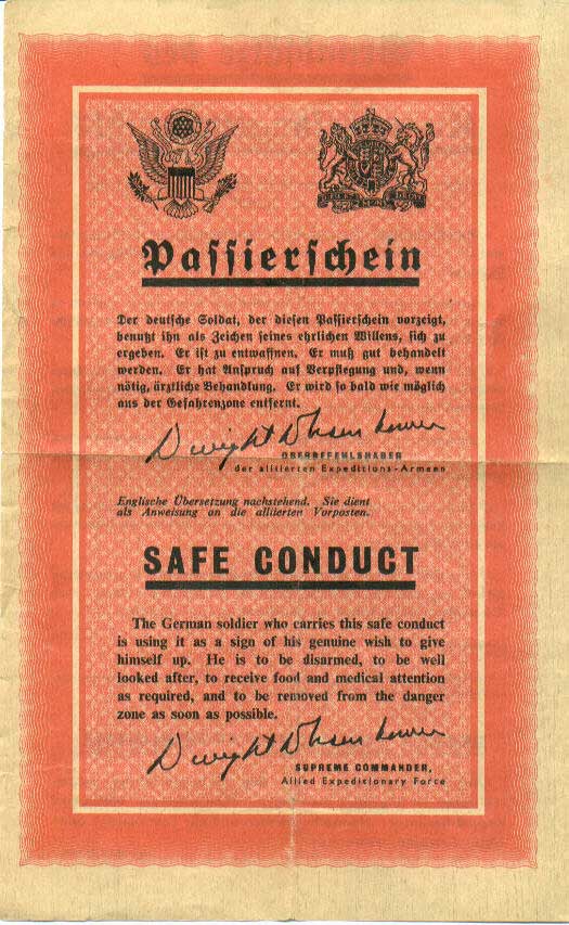 CONDUCT PASS These leaflets were dropped over German lines in 1944 & 1945 |