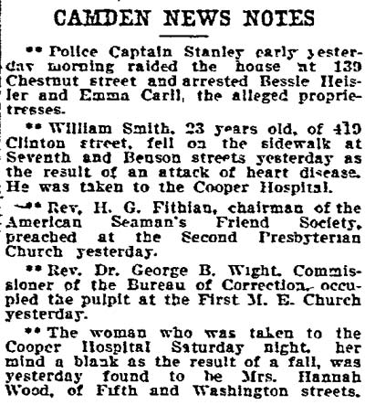 The Reverend James C. Russell was pastor in the early 1890s, before going to serve in upstate New York. The Reverend Robert C. Jenkins served as Pastor of Second Presbyterian Church in the late 1910s and early 1920s. The church was sold to the Camden Board of Education for $3,500 and reopened as the Central School Annex on November 30, 1925. |