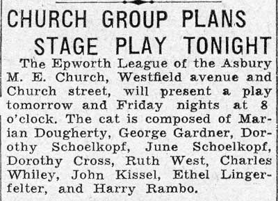 incorporation were filed. At the session of the New Jersey Conference, held in 1881, the Presiding Elder reported, "Dudley has erected a beautiful frame building with two class rooms, worth thirty-five hundred dollars, upon which when the subscriptions are collected there will be but four hundred dollars debt." The minutes of that year report but ten full members and no probationers. As all of these were poor it seems almost incredible that so much could have been done. In December, 1884, the ground lying east of the church, extending to Church street, sixty-eight feet by one hundred and fifty feet was bought for parsonage purposes, also fifty feet by fifty feet, in the rear of the church lot, thus making a lot one hundred and eighteen feet on Westfield avenue and one hundred and fifty feet on Church street. In 1889 a large and pleasant parsonage was built on the corner and was first occupied by Rev. George H. Neal, Jr., during the first year of his pastorate. In 1887 the east class room was enlarged and in 1893 it was again enlarged and other extensive improvements were made, including alterations to the tower and re-seating the church.. A growing Methodist population in the region lying north of the railroad seemed to require recognition and as a result a Sunday School was organized there The School held its sessions in an unused room in Joseph Glander's house for several months. A time came when the family needed the room and as lots were offered on favorable terms, ground was bought on River Road, and in 1889 a church building was erected for the use of the Sunday School and for church services. On October 1, 1892, this building was destroyed by fire (believed to have been of incendiary origin) and the following year a new and larger one was erected on the same site. Considerable help was received from several of the churches of the Conference and without this aid it would not have been possible to rebuild. Out of this enterprise has come Fairview Methodist Episcopal Church, which in 1898 became a separate charge and has had a very successful history. For several years efforts were made to provide for the debt which had existed since the parsonage was built and these efforts were finally successful and in 1907 the mortgage was burned in the presence of a happy congregation. The honor of applying the match was given to Thomas Adams and William S. Zelley, the two oldest members of the Board of Trustees. During 1908 many improvements were made to the church, including a new slate roof, repapering, relighting, etc., at an expense of $2,800.00. At the Conference of 1908 the Trustees reported having property to the value of $10,000 and no debt. The minutes of the present year w\]\ show a considerably greater value but because of the improvements referred to a debt will also have to be reported. The present membership is 265. The Sunday School enrollment is 380..