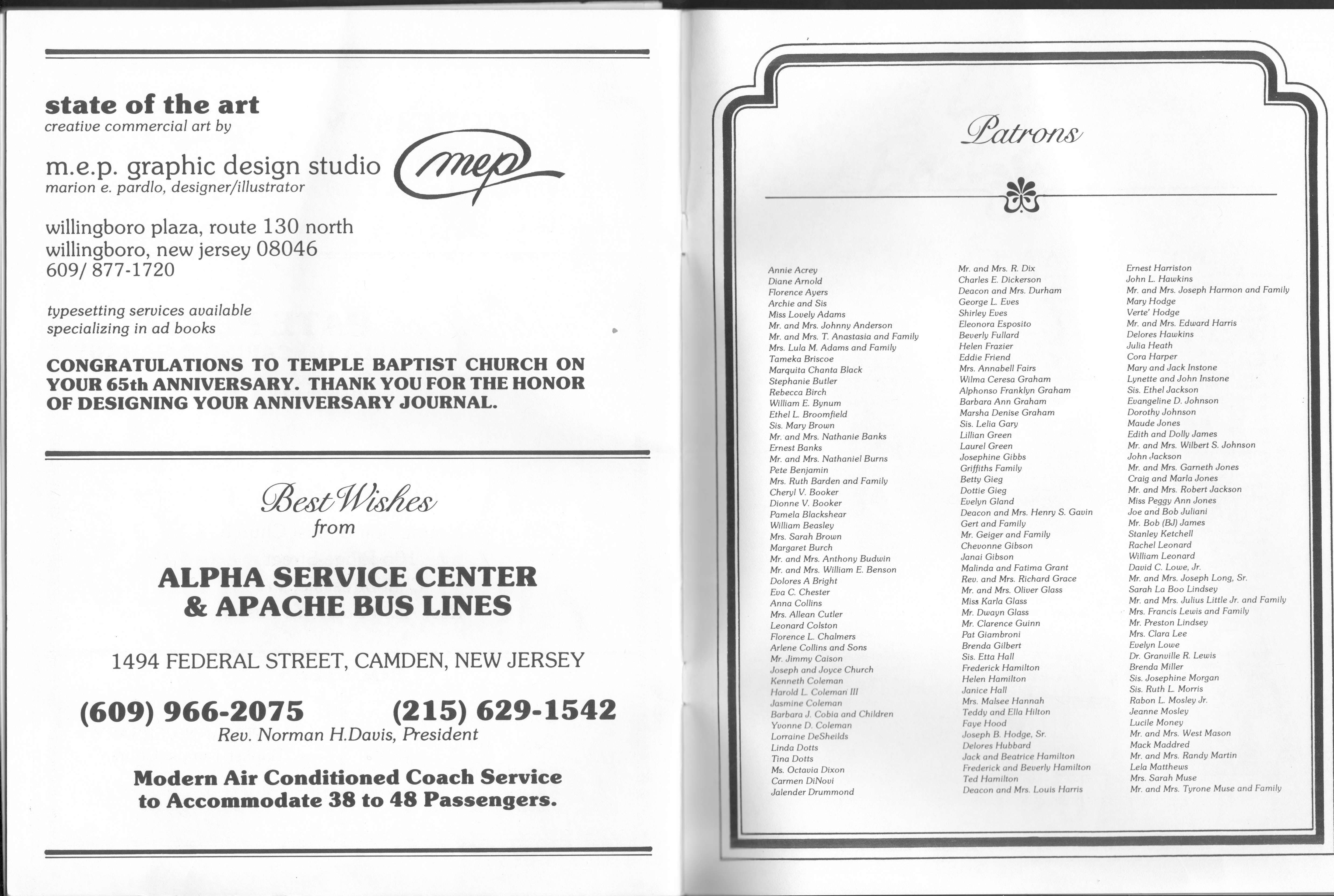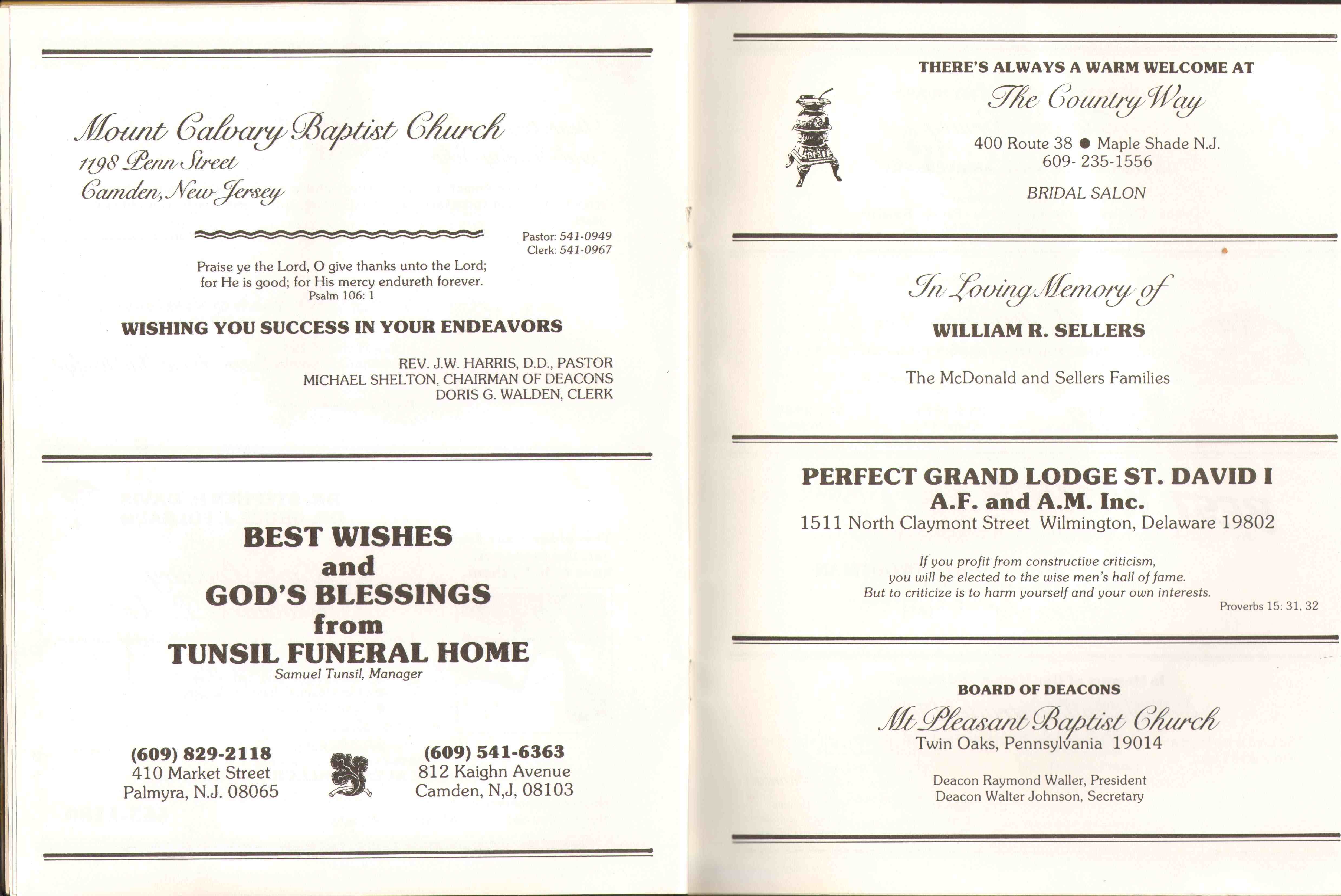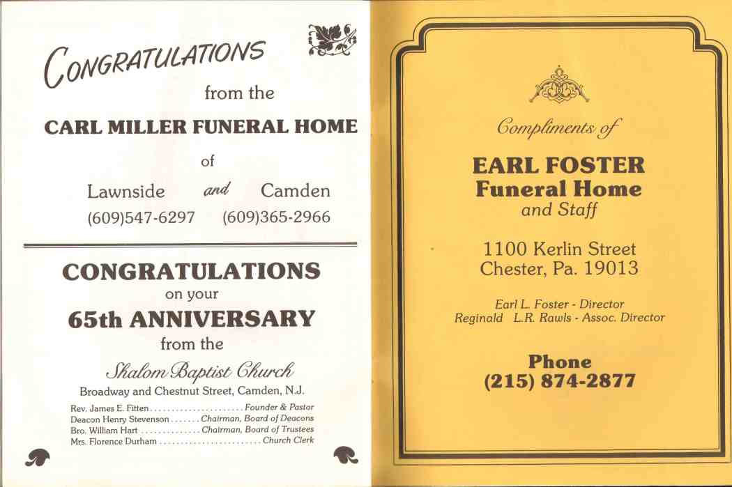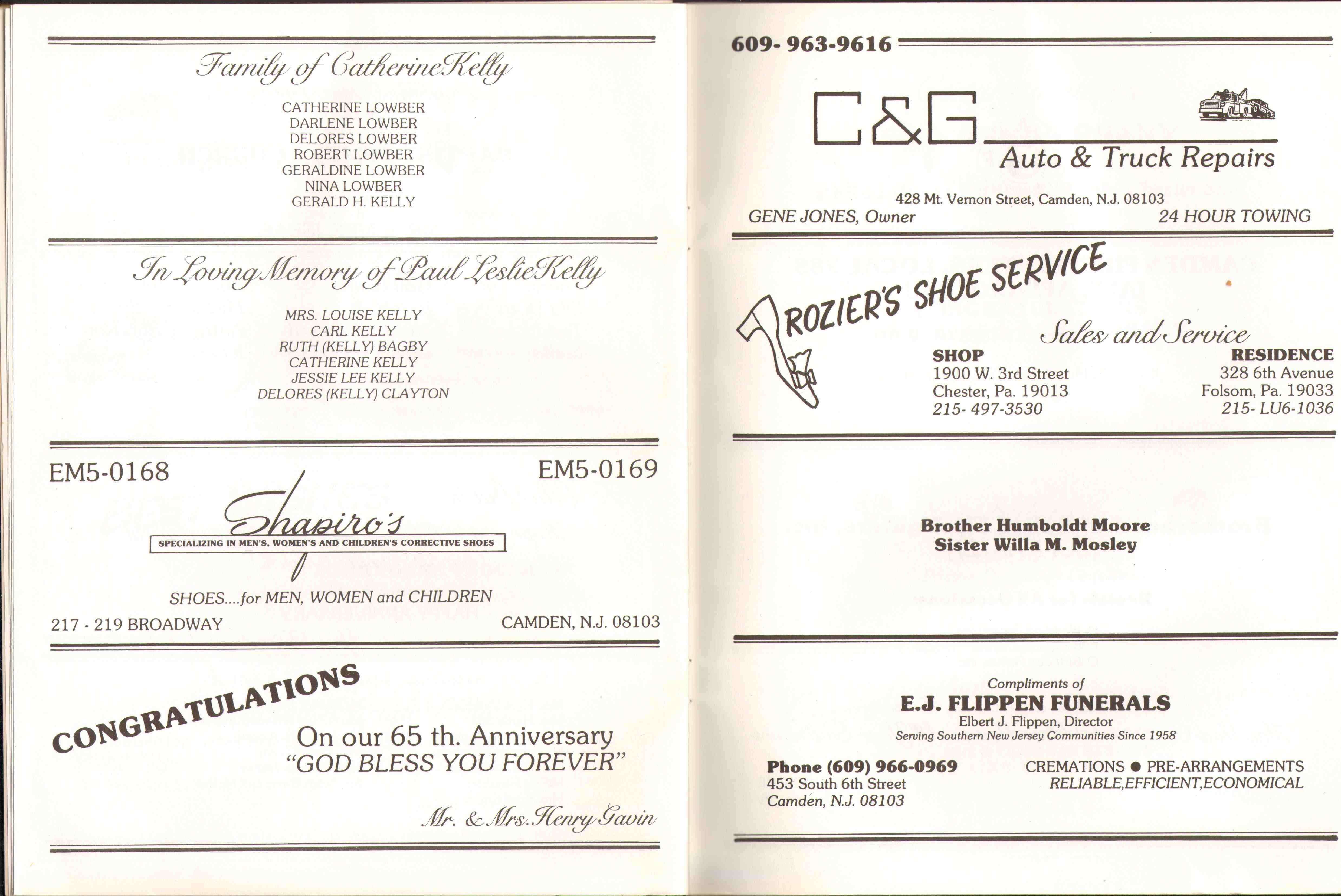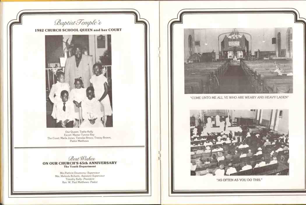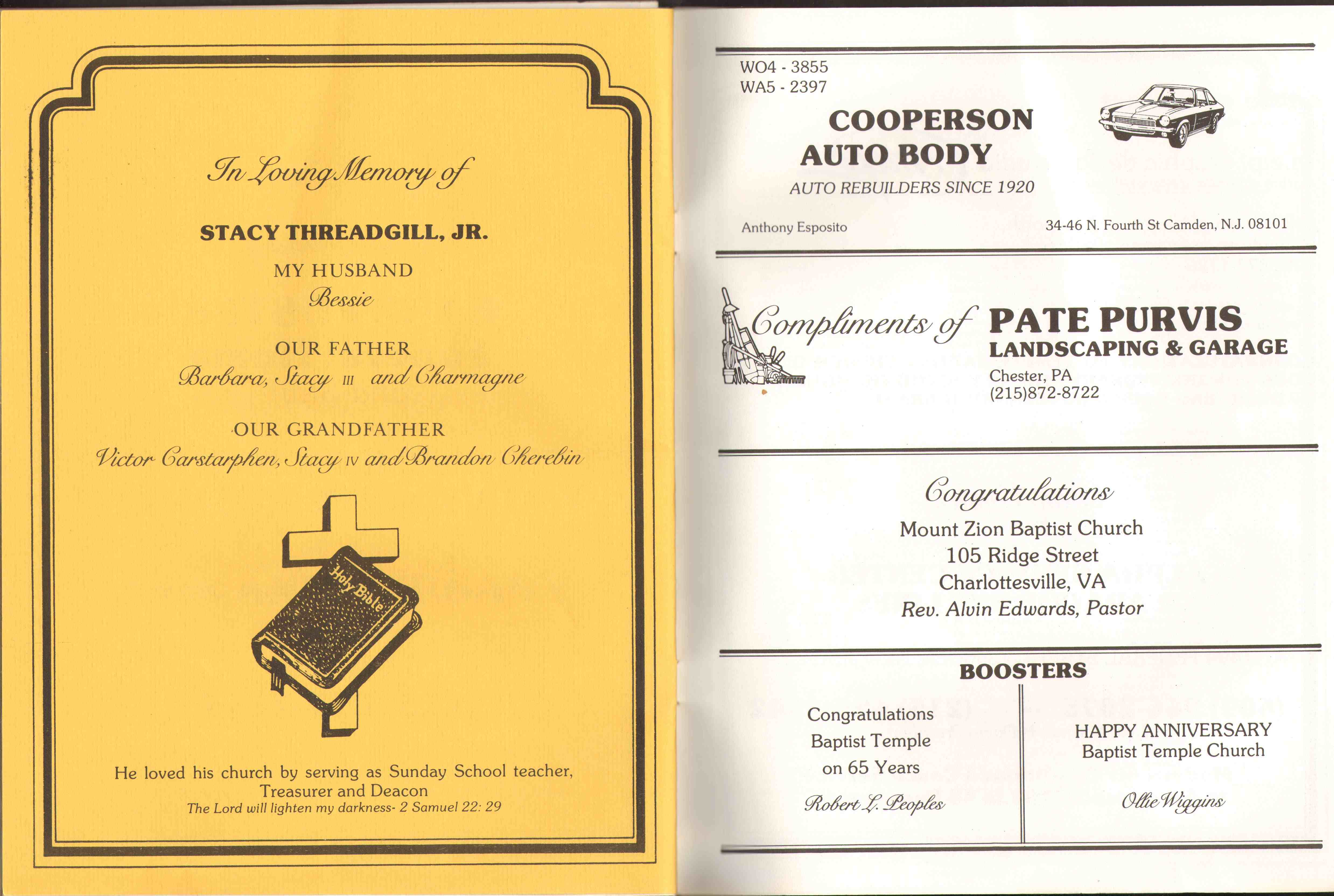 BAPTIST TEMPLE CHURCH stands on the southwest corner of South 4th Street and Mt. Vernon Street. The building goes back to the late 1860s 0r early 1970s, when the Second Baptist Church, erected a meeting-house on the southwest corner of Fourth and Mount Vernon, of brick, two stories high and costing, with ground, eighteen thousand dollars. This church operated as the Second Baptist Church as late as 1888, according to City Directories. That year's Directory shows the congregation being led by Rev. John D. Flansburg. The 1890 Directory shows the name had been changed to Mt. Vernon Baptist Church, and that Rev. Flansburg still led the church, however declining membership and dissatisfaction with Rev. Flansburg caused much controversy. The 1894 Directory shows that the church had once again been reorganized, and was then known as Emmanuel Baptist Church, with Rev. Joseph N. Folwell now at its helm. Among his successors were Rev. John Snape and Rev. Dr. Quentin Chew Davis. Emmanuel Baptist Church remained at this location until 1920, when the present occupant, Baptist Temple Church, acquired the property, which they still occupy. The Baptist Temple Church was founded in 1917 as the Morning Star Baptist Church. This congregation renamed itself Baptist Temple Church and acquired the building at South 4th Street and Mt. Vernon Street in lat 1919 or early 1920. |