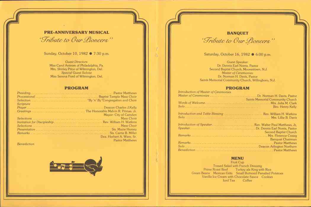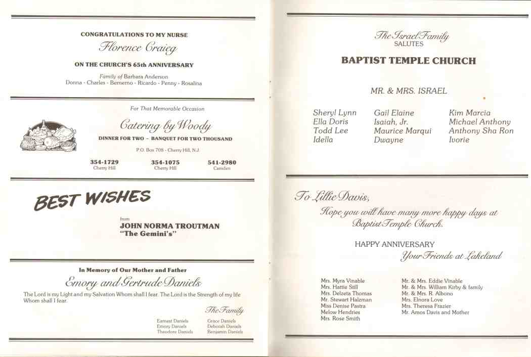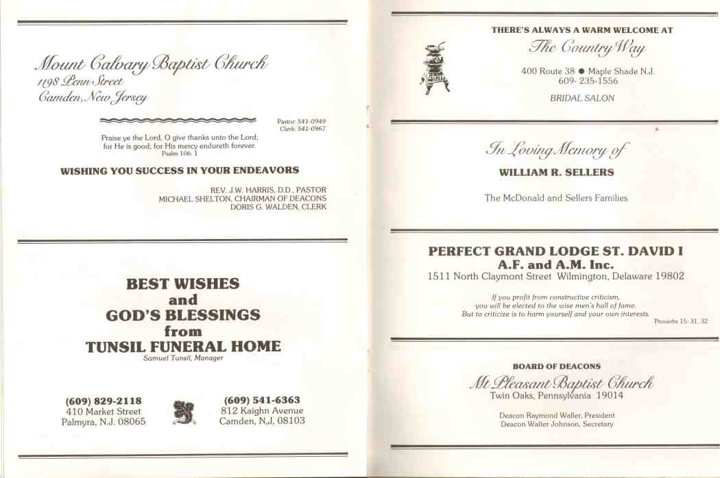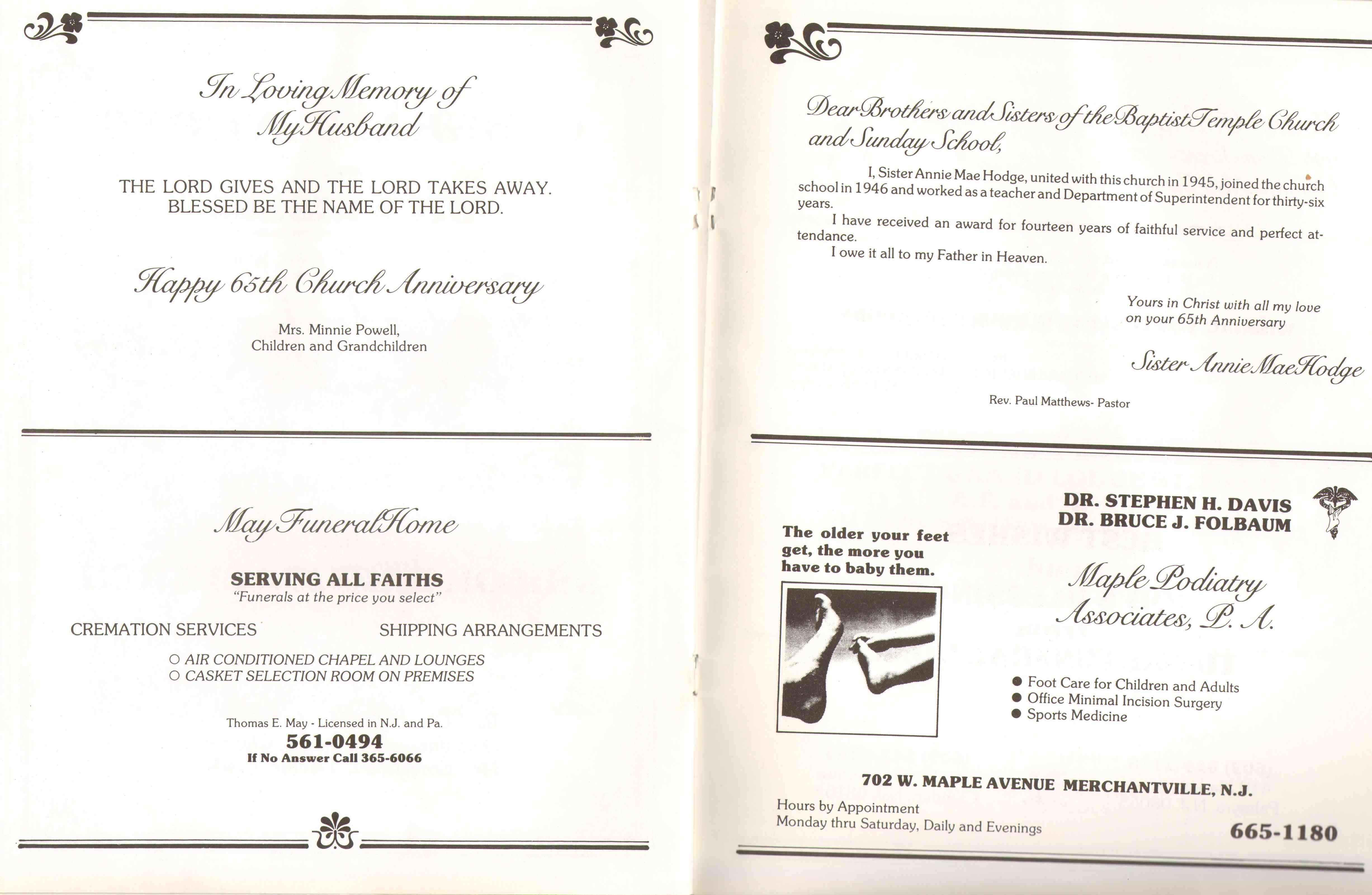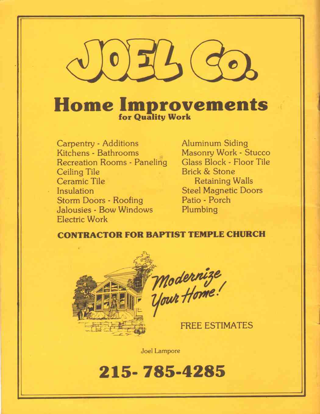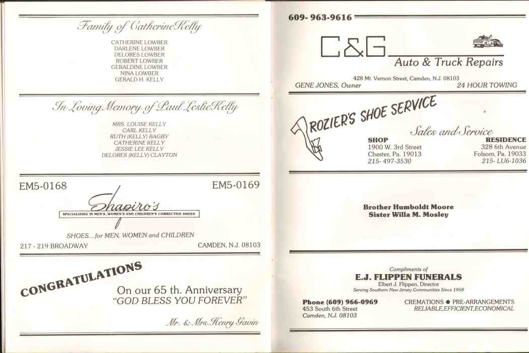 BAPTIST TEMPLE CHURCH stands on the southwest corner of South 4th Street and Mt. Vernon Street. The building goes back to the late 1860s 0r early 1970s, when the Second Baptist Church, erected a meeting-house on the southwest corner of Fourth and Mount Vernon, of brick, two stories high and costing, with ground, eighteen thousand dollars. This church operated as the Second Baptist Church as late as 1888, according to City Directories. That year's Directory shows the congregation being led by Rev. John D. Flansburg. The 1890 Directory shows the name had been changed to Mt. Vernon Baptist Church, and that Rev. Flansburg still led the church, however declining membership and dissatisfaction with Rev. Flansburg caused much controversy. The 1894 Directory shows that the church had once again been reorganized, and was then known as Emmanuel Baptist Church, with Rev. Joseph N. Folwell now at its helm. Among his successors were Rev. John Snape and Rev. Dr. Quentin Chew Davis. Emmanuel Baptist Church remained at this location until 1920, when the present occupant, Baptist Temple Church, acquired the property, which they still occupy. The Baptist Temple Church was founded in 1917 as the Morning Star Baptist Church. This congregation renamed itself Baptist Temple Church and acquired the building at South 4th Street and Mt. Vernon Street in lat 1919 or early 1920. |