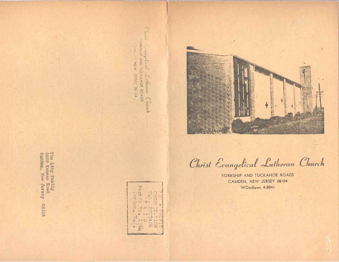 Christ Evangelical Lutheran Church was organized soon after the construction of the houses at Yorkship Village. Located at Yorkship and Tuckahoe Roads, as best I know this church was not connected to a similarly named church that was located at North 27th Street and Hayes Avenue in Cramer Hill. |