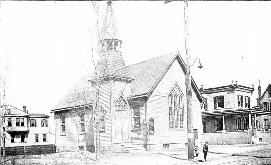 THE In the spring of 1886 a meeting was held at the home of Mr. Samuel Dare on Fulton street (now 25th street, East Camden), for the purpose of instituting a Methodist Mission. Though not strong in numbers they were determined, and the meeting finally culminated in the establishment of a Sunday school, consisting of Brother and Sister Dare, Mr. Barnet as superintendent, and four scholars. The first pulpit was a large dry goods box covered with calico, and Brother Dare's old family bible was the first in use. In the course of a few months the number of scholars increased to such an extent that they were offered the use of a large store, which was accepted, the attendance continued to increase, till there were about sixty scholars when they began to look around for other quarters. A proposition was offered them by a Mr. Cohn, who had bought some land from Mr. William Cooper, called Fairview, a committee was appointed to confer with him and resulted in the acceptance of his proposition, which was the purchase of the lots where the church now stands. A certain amount of money had to be paid before the church could be built, but the whole congregation went to work with a will, and were not long in raising the needed sum, they being greatly assisted in their work by Rev. Mr. Wilson the pastor of Dudley (now Asbury M. E. Church) under whose charge as a mission they were enrolled. Mr. Barnet resigned as superintendent of the Sunday school at this time (year of 1889) Mr. David Keever filling the vacancy. About this time Brother Wilson was removed from the charge of the mother church and Rev. George Neal was appointed in his place. Brother Neal became greatly interested in the mission; and came over every Thursday evening and held prayer meeting. In September of this year (1889) the corner stone was laid for the church building, presiding elder Rev. Milton Relyea, Rev. John Westwood of the First M. E. Church and Rev. George Neal of the mother church taking part in the ceremonies. In the early part of December the scholars marched in a body to the church, feeling quite proud of their new home. In January 1890 the church was dedicated. Services were held on Sabbath as follows : Class meeting in the morning, Samuel Dare, leader; Sunday school in the afternoon, and services in the evening, at which time the exhorters from Asbury church would have charge. Mr. Keever then resigned as the Sunday school Superintendent, Mr. Shaw, being elected to the vacancy. And this by wise management the school and church continued to increase. Local preachers were engaged to preach both Sabbath morning and evening, class meeting being changed to Tuesday evening. At the Conference of 1891 Mr. Charles White was appointed to serve the mission which he did for one year. Mr. Shaw resigned as Superintendent of the school, Mr. William Zelley being appointed to the vacancy and served as long as it was a mission. After conference of 1892 the local preachers of the Mother