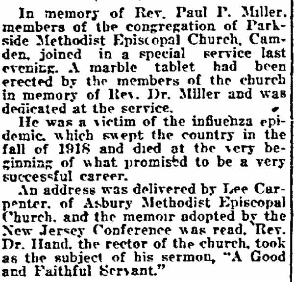 PARKSIDE METHODOST EPISCOPLA CHURCH first appears in City Directories in 1916 on Haddon Avenue near Kaighn on the east side of the street. A new building was built and most likely complete in 1919 on the southeast corner of Kaighn and Kenwood Avenues. |