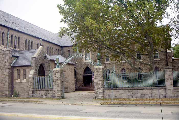 In the late 1890s the Diocese of Camden purchased a large tract of land upon which it built the Convent of the Order of Perpetual Rosary, and later, Our Lady of Lourdes Hospital. Now over 100 years old, the cornerstone of the Convent of the Dominican Sisters of the Perpetual Rosary on Haddon Avenue was laid on October 26, 1902. Known to most Camden residents simply as "the Convent", the Perpetual Rosary Church served the Catholic residents of the Parkside neighborhood of Camden. |