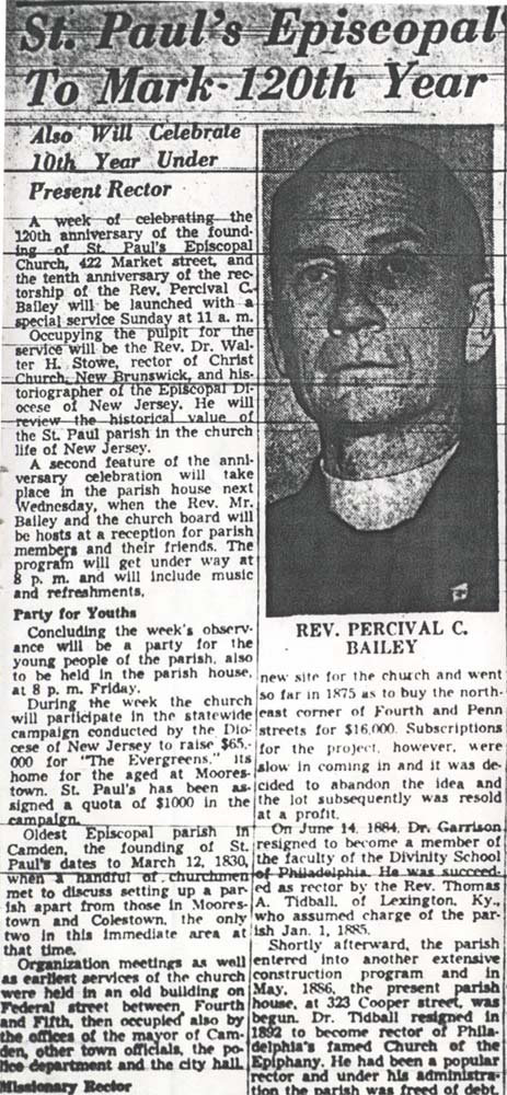 St. Paul's Episcopal Church was founded in Camden NJ in 1830. Located at 422 Market Street, it remains in service in 2003. . |