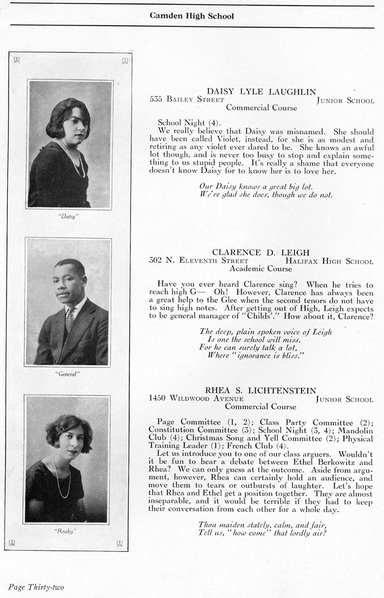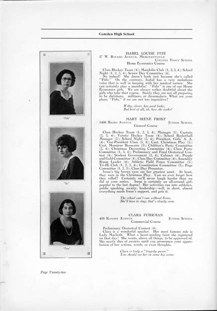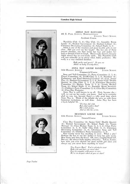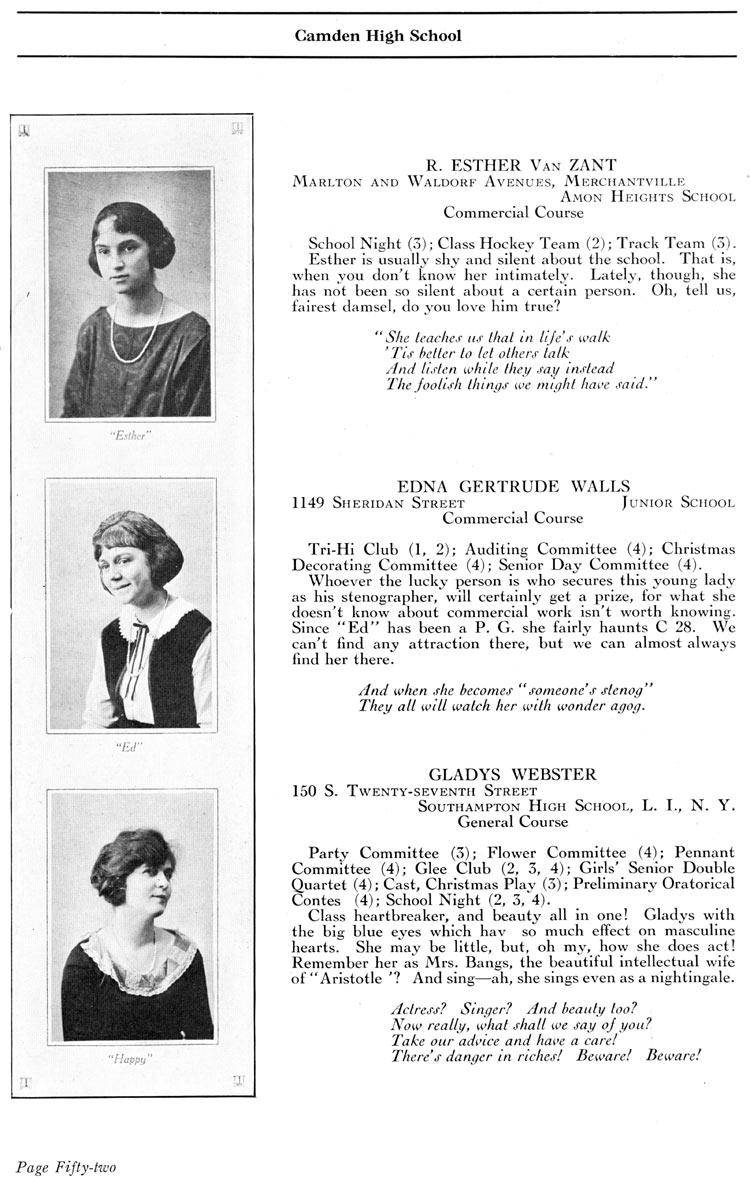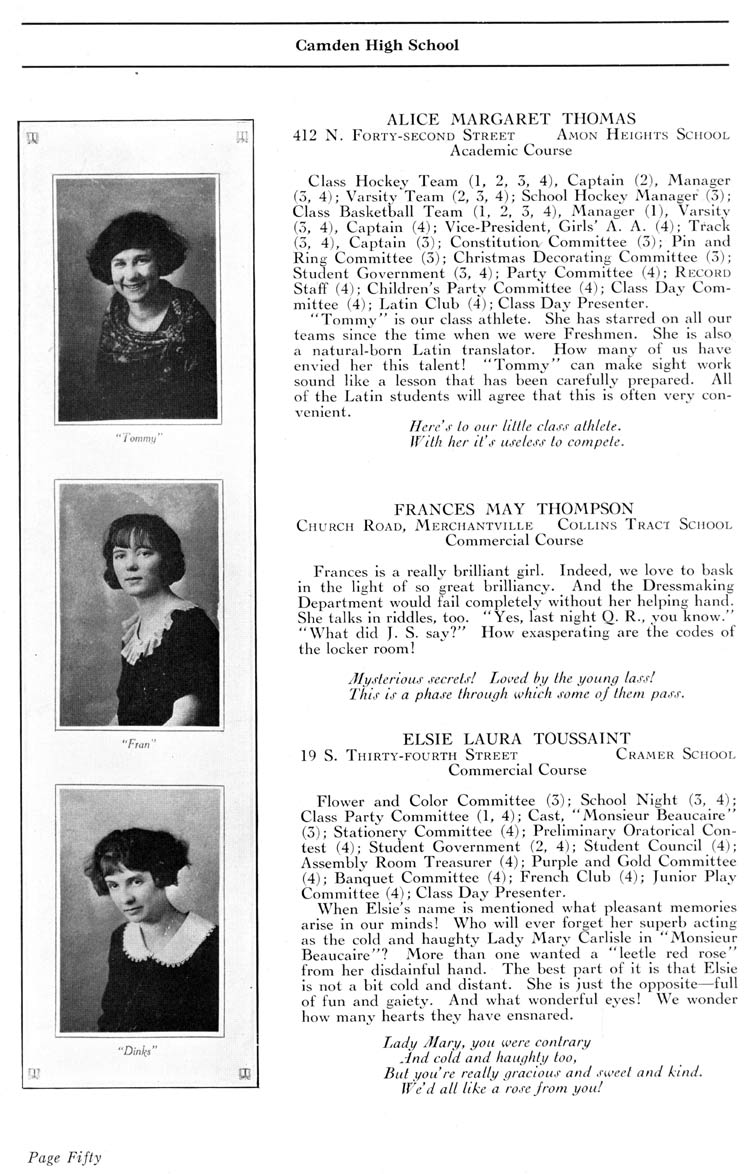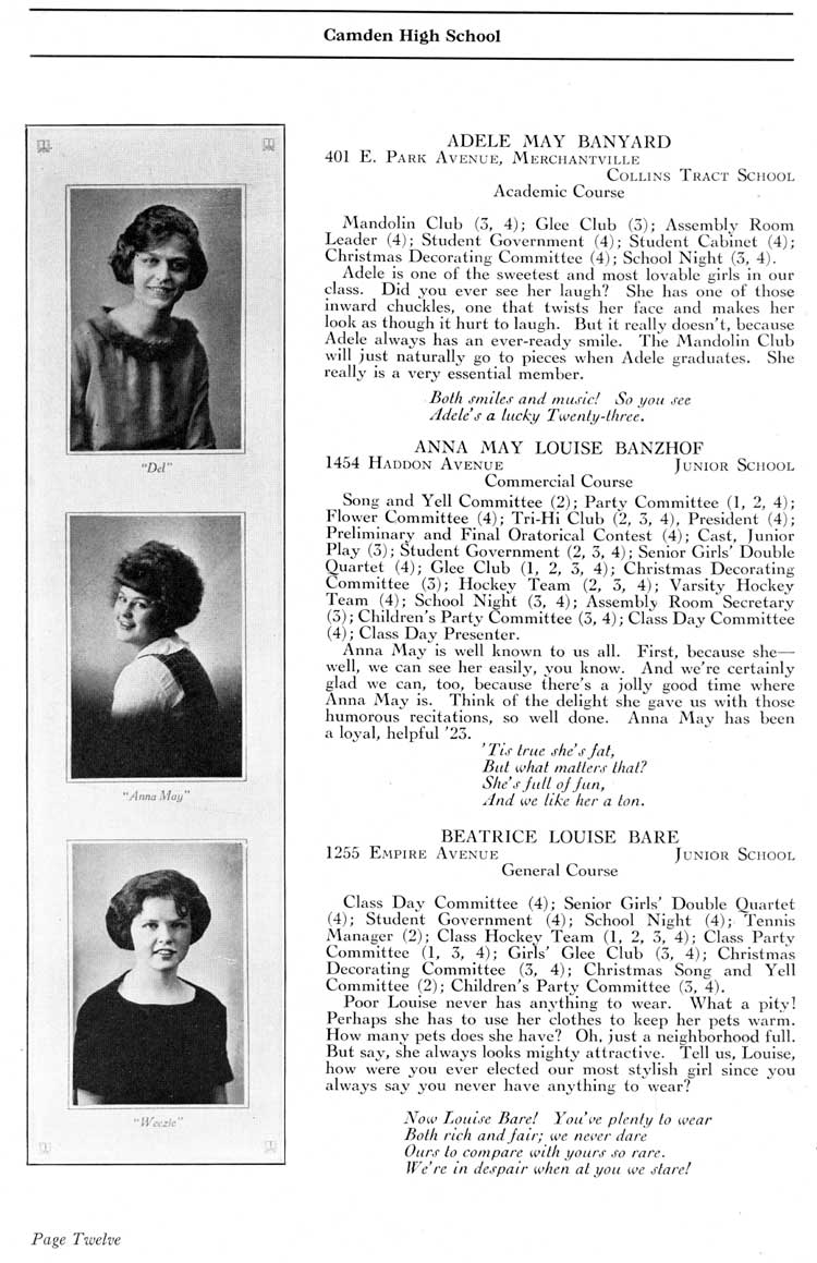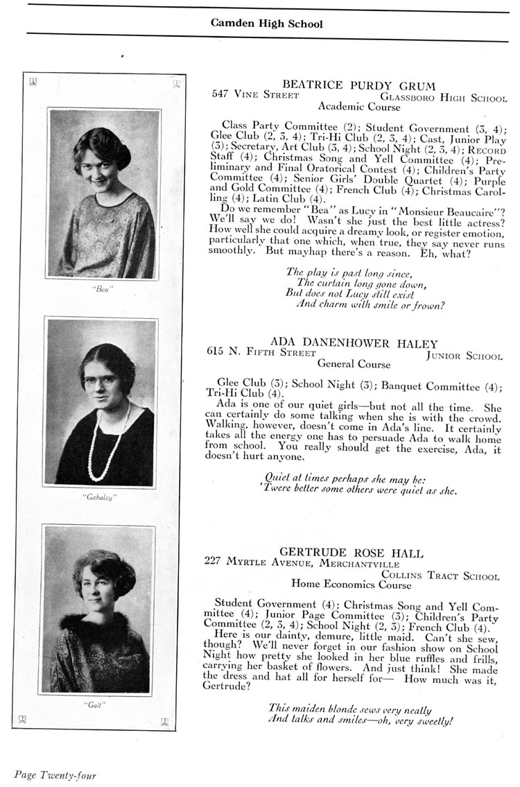 CAMDEN HIGH SCHOOL CLASS OF 1924 From 1923 Camden High School Purple & Gold Yearbook Elizabeth