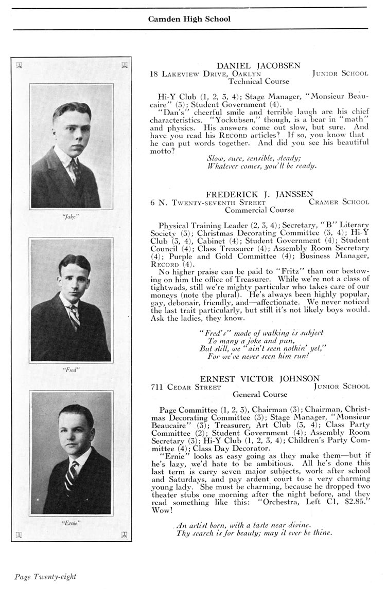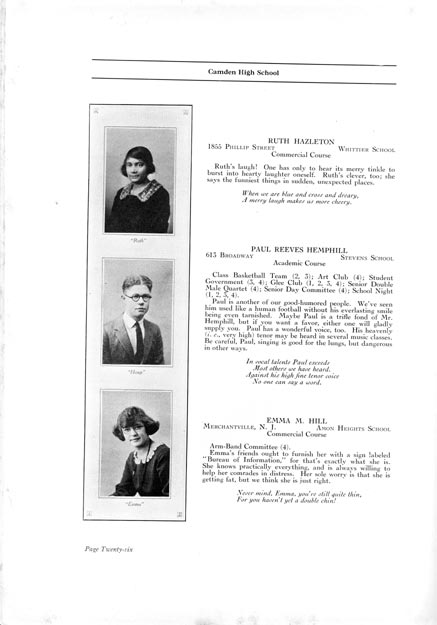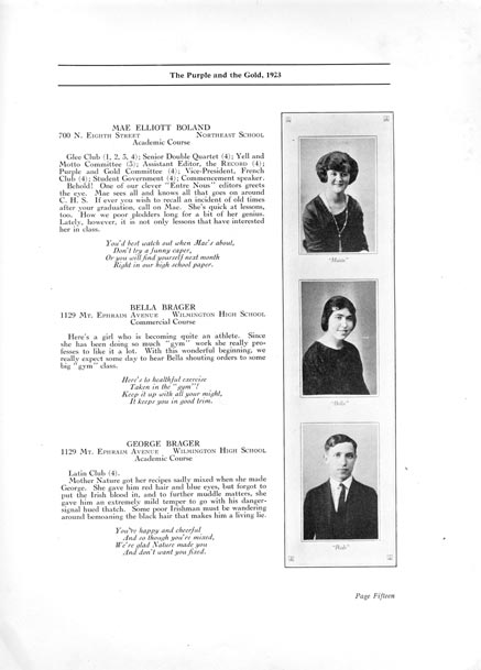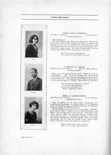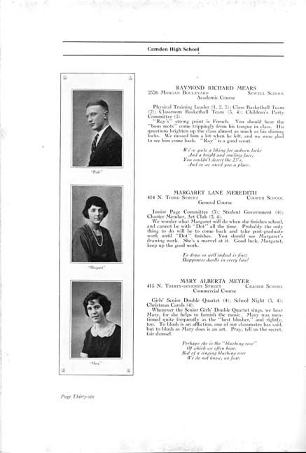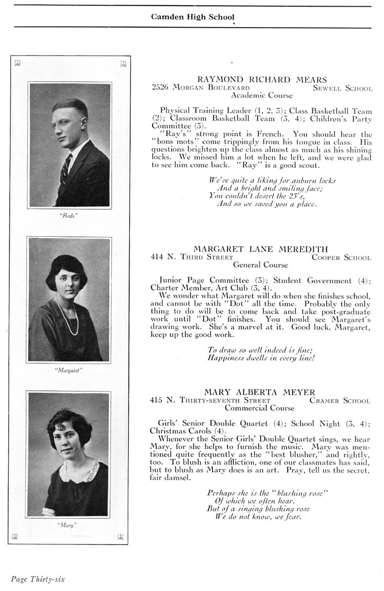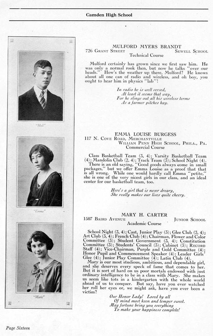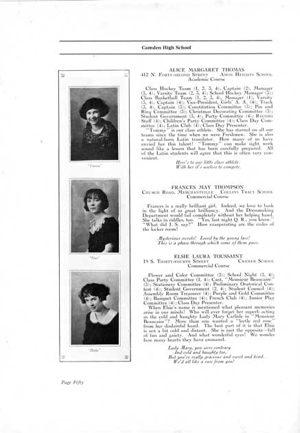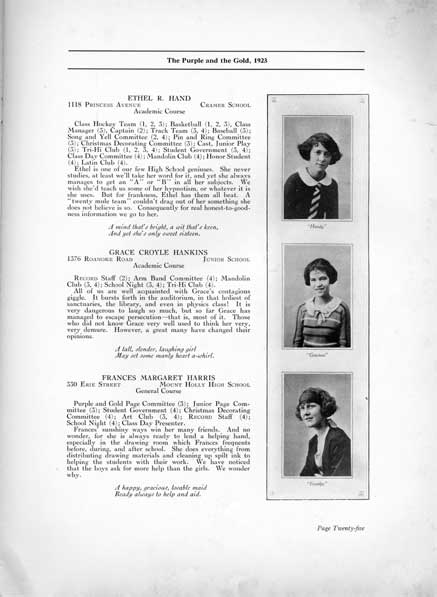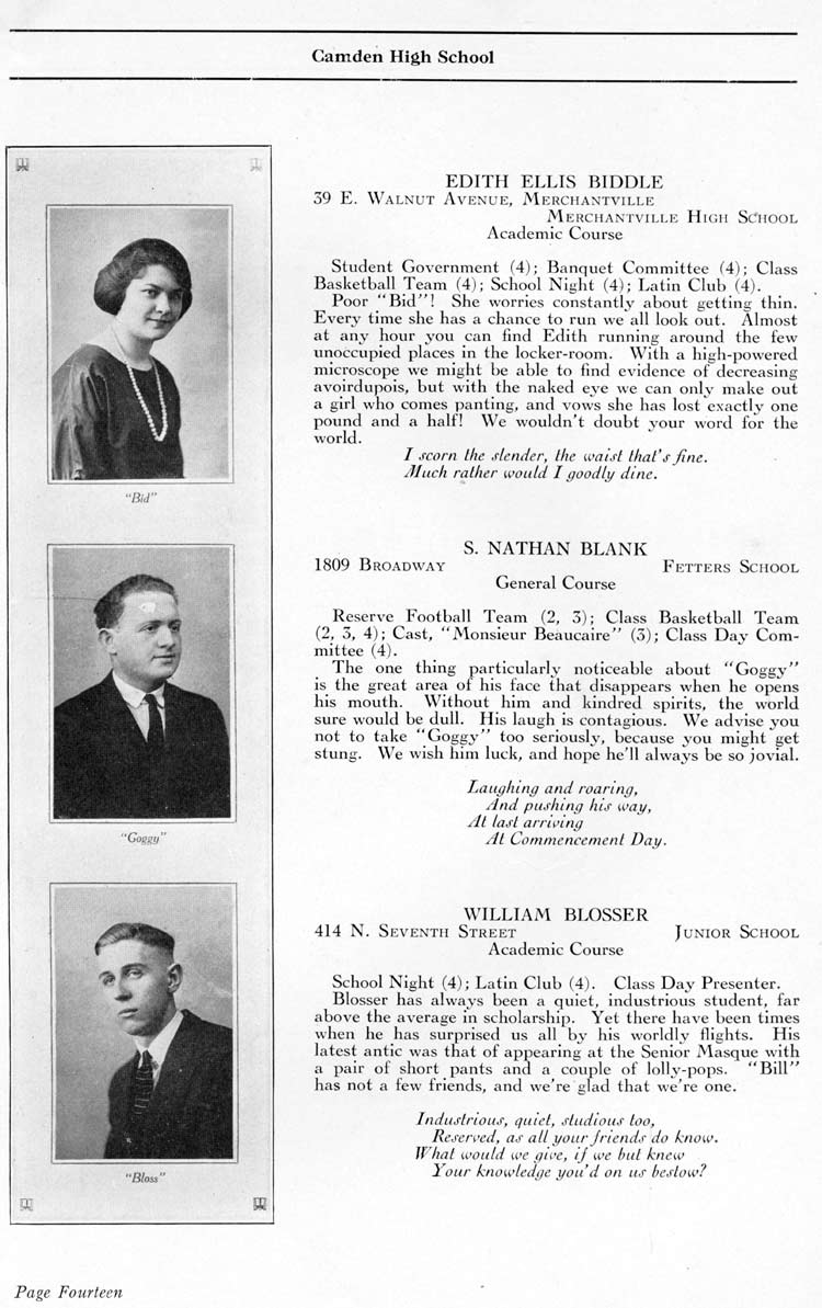 CAMDEN HIGH SCHOOL CLASS OF 1924 From 1923 Camden High School Purple & Gold Yearbook Elizabeth