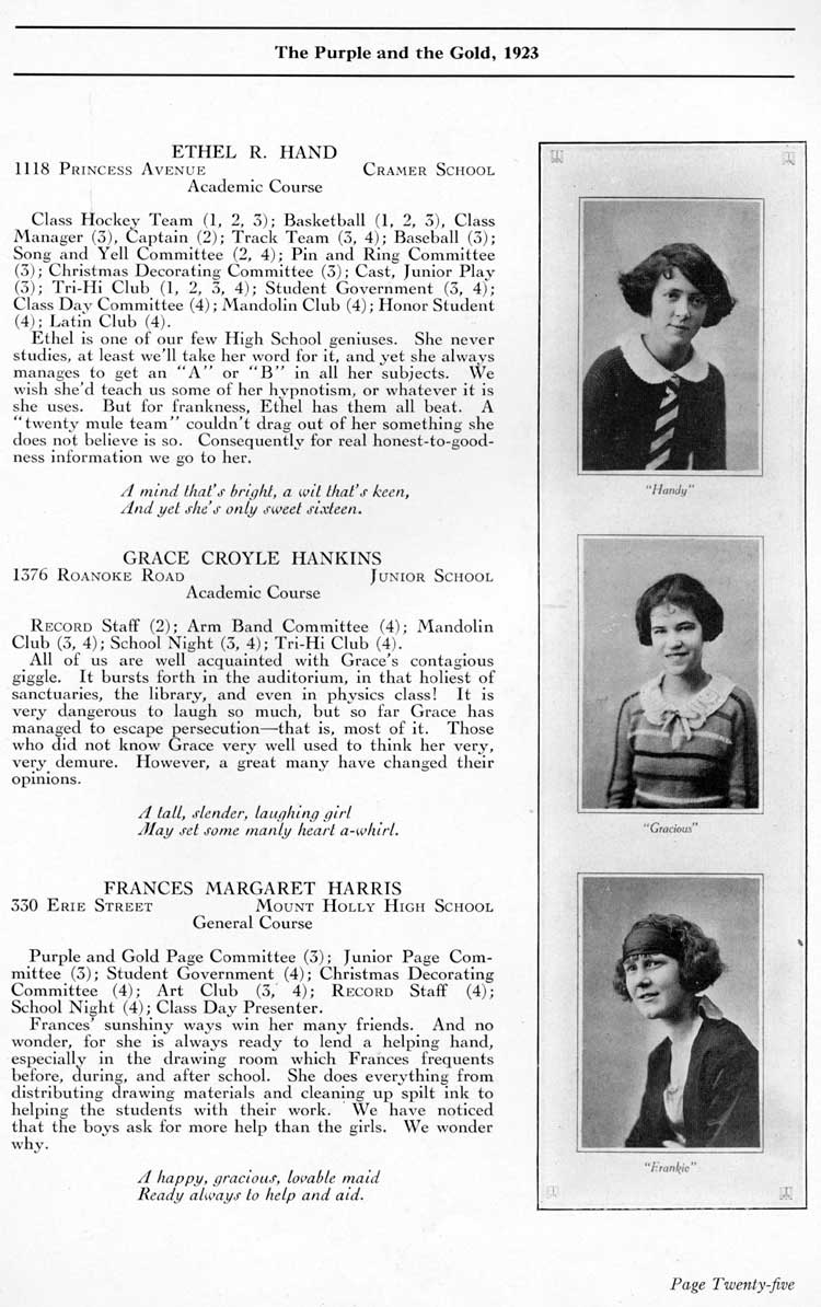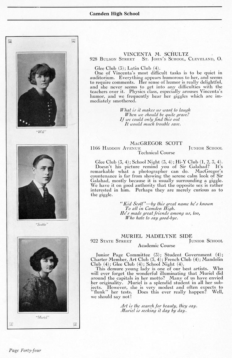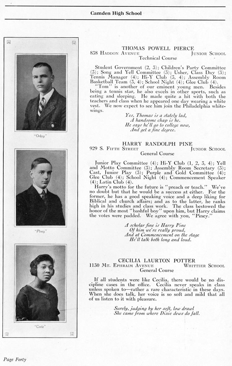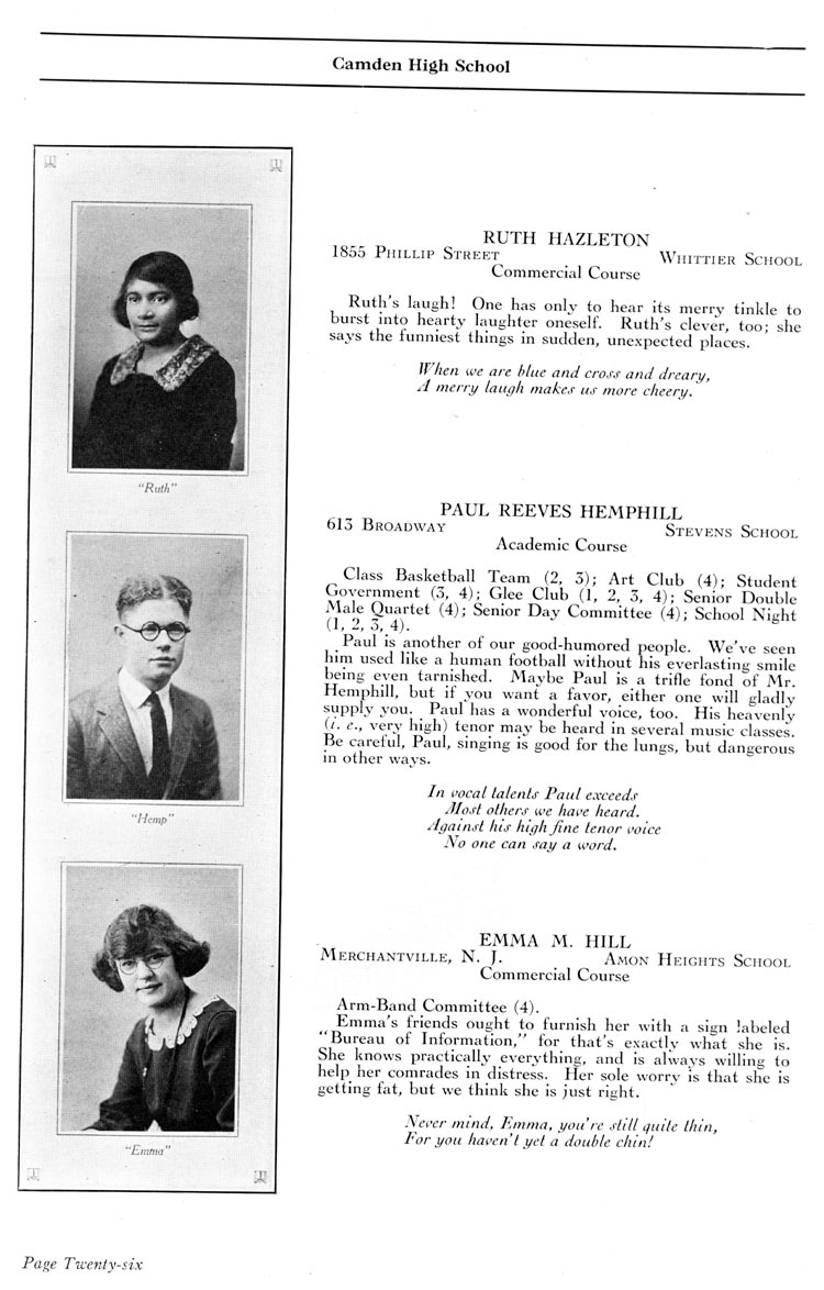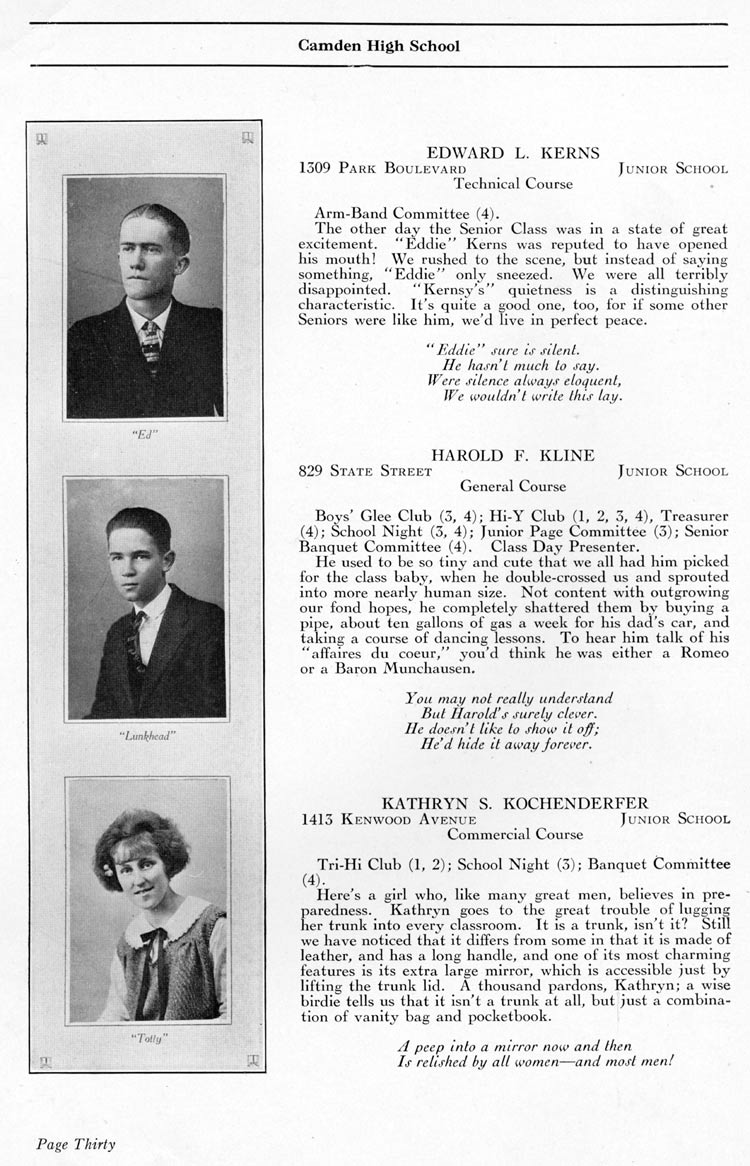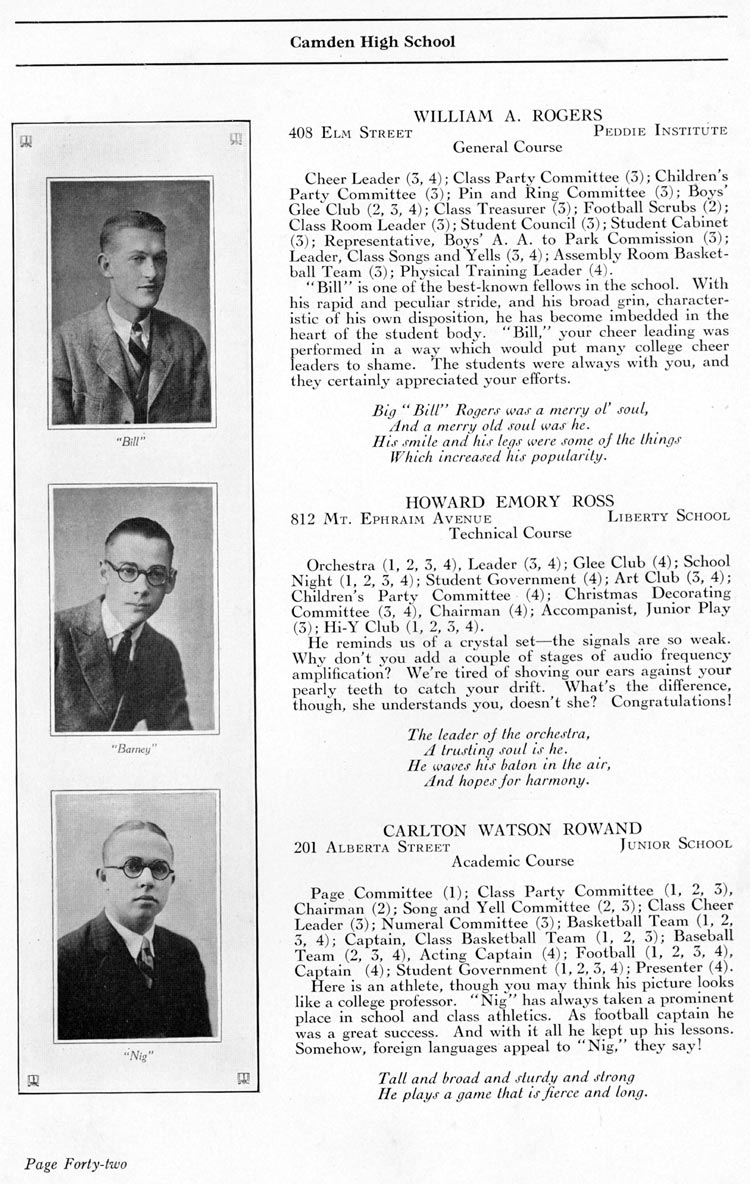 CAMDEN HIGH SCHOOL CLASS OF 1924 From 1923 Camden High School Purple & Gold Yearbook Elizabeth