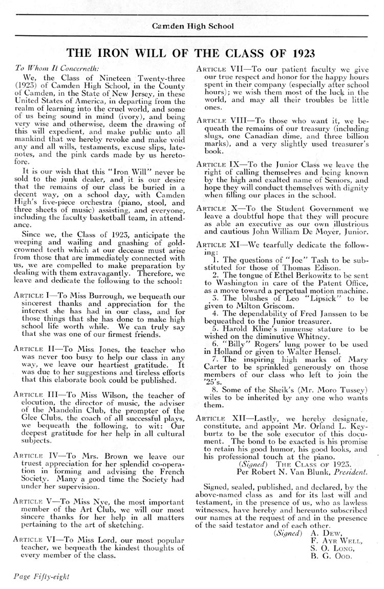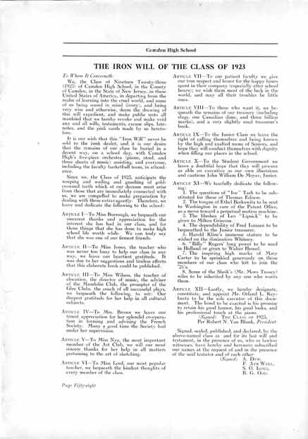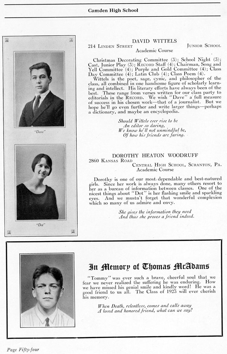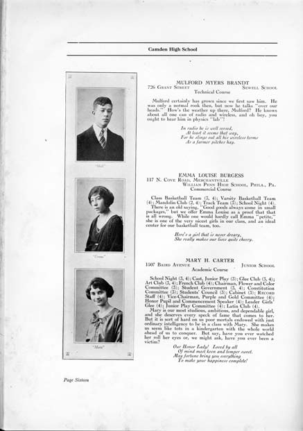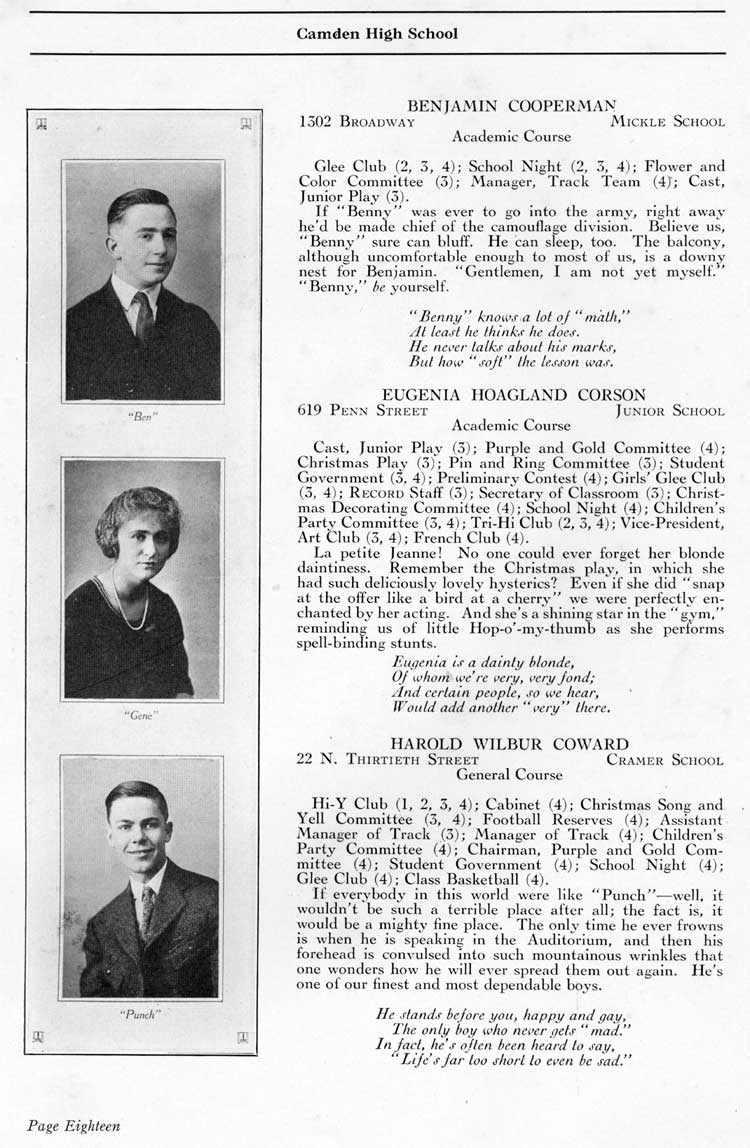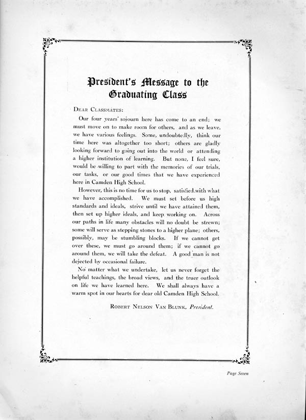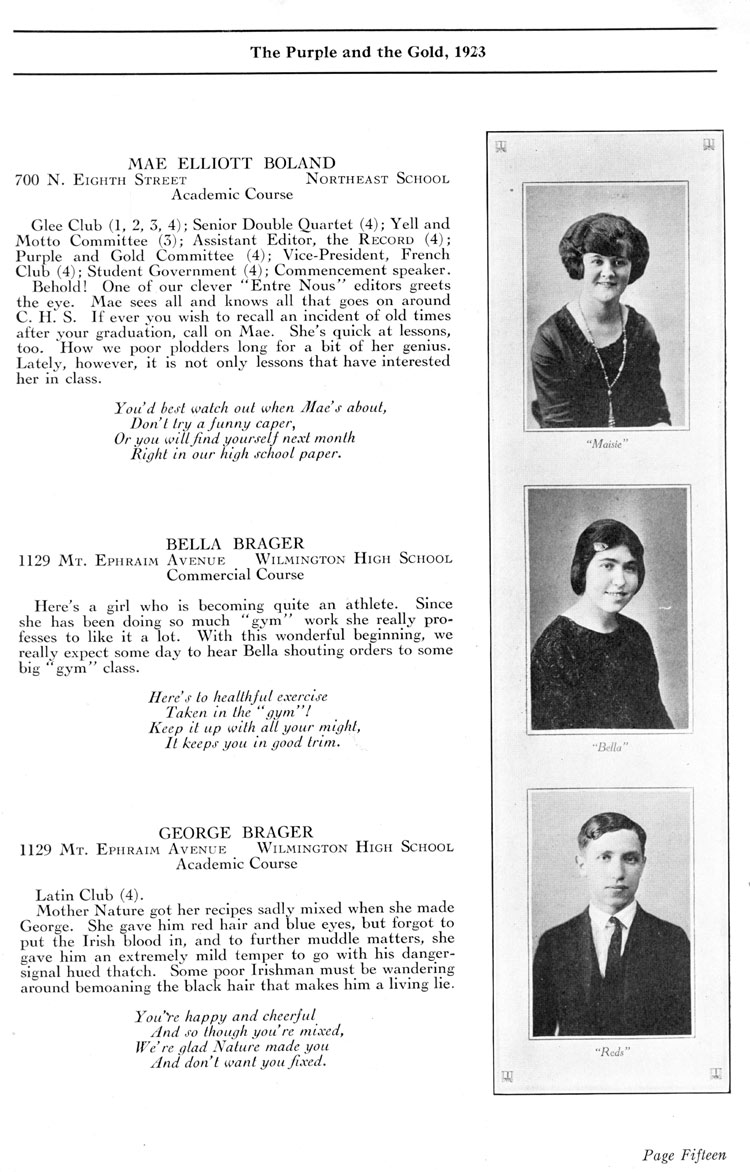 CAMDEN HIGH SCHOOL CLASS OF 1924 From 1923 Camden High School Purple & Gold Yearbook Elizabeth