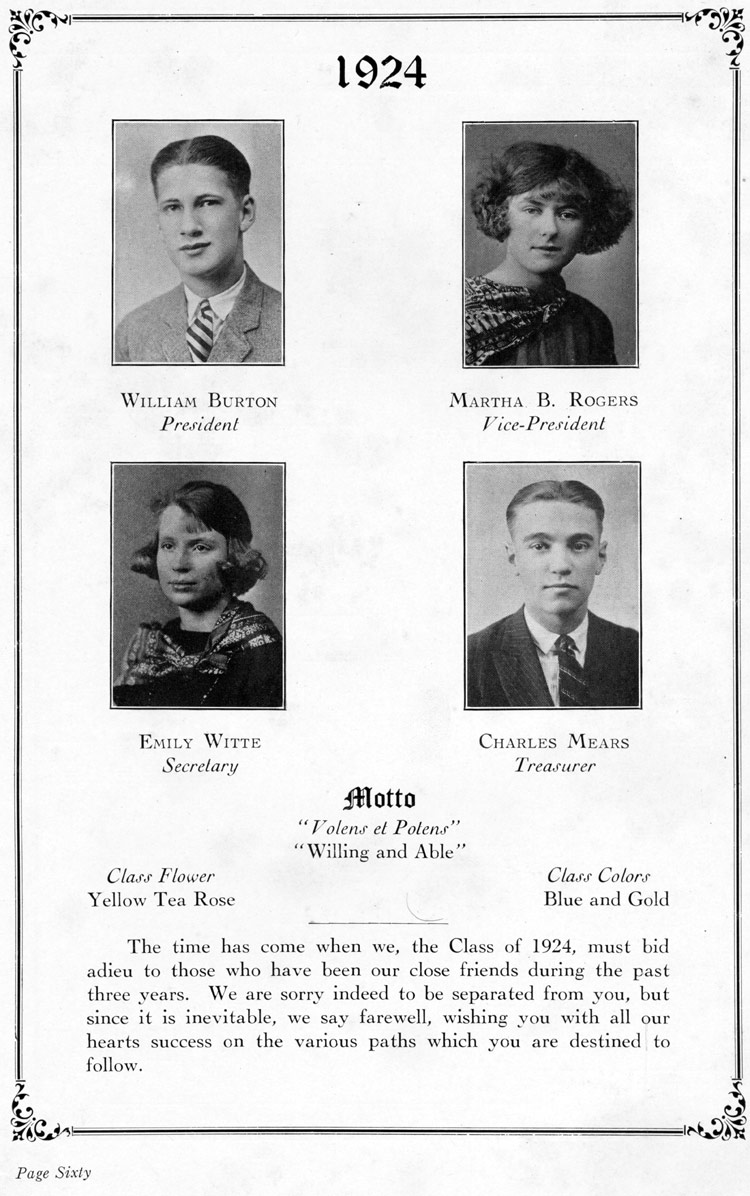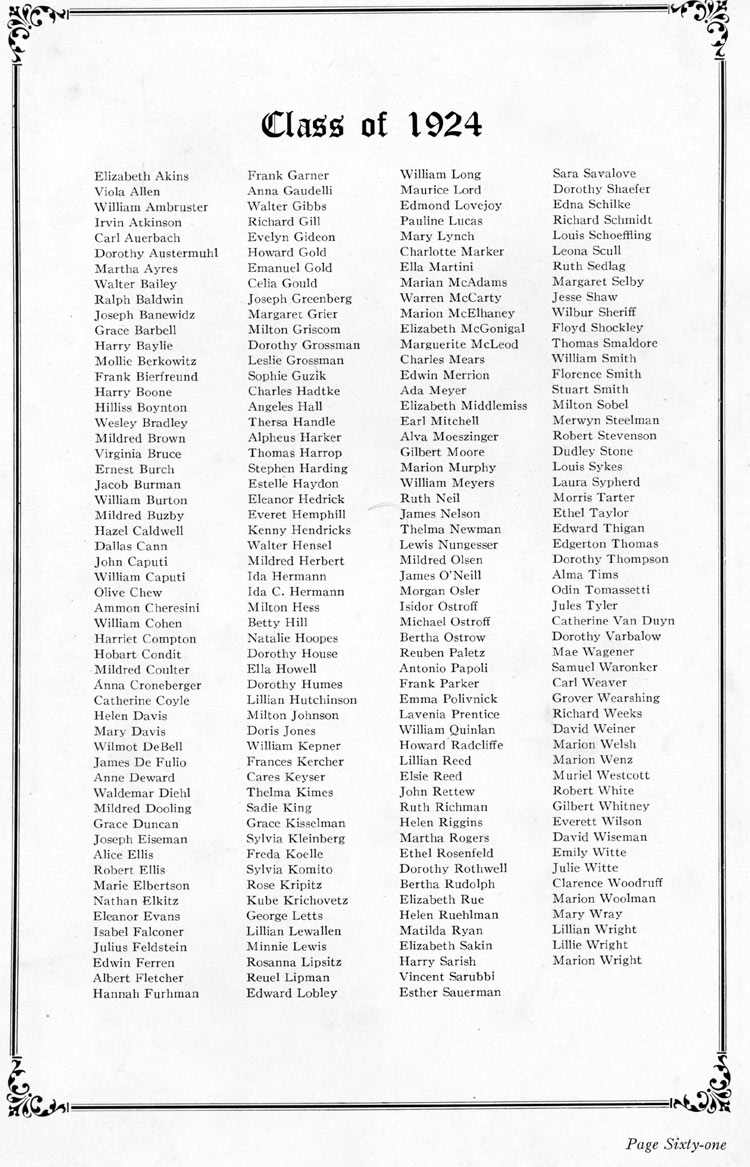 Class of 1924 Click on Image to Enlarge Click Here for Text Version