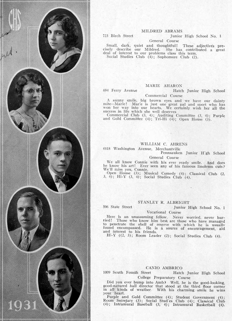 more beloved classmates, including Ruth Brooks, Mildred Abrams, Evelyn