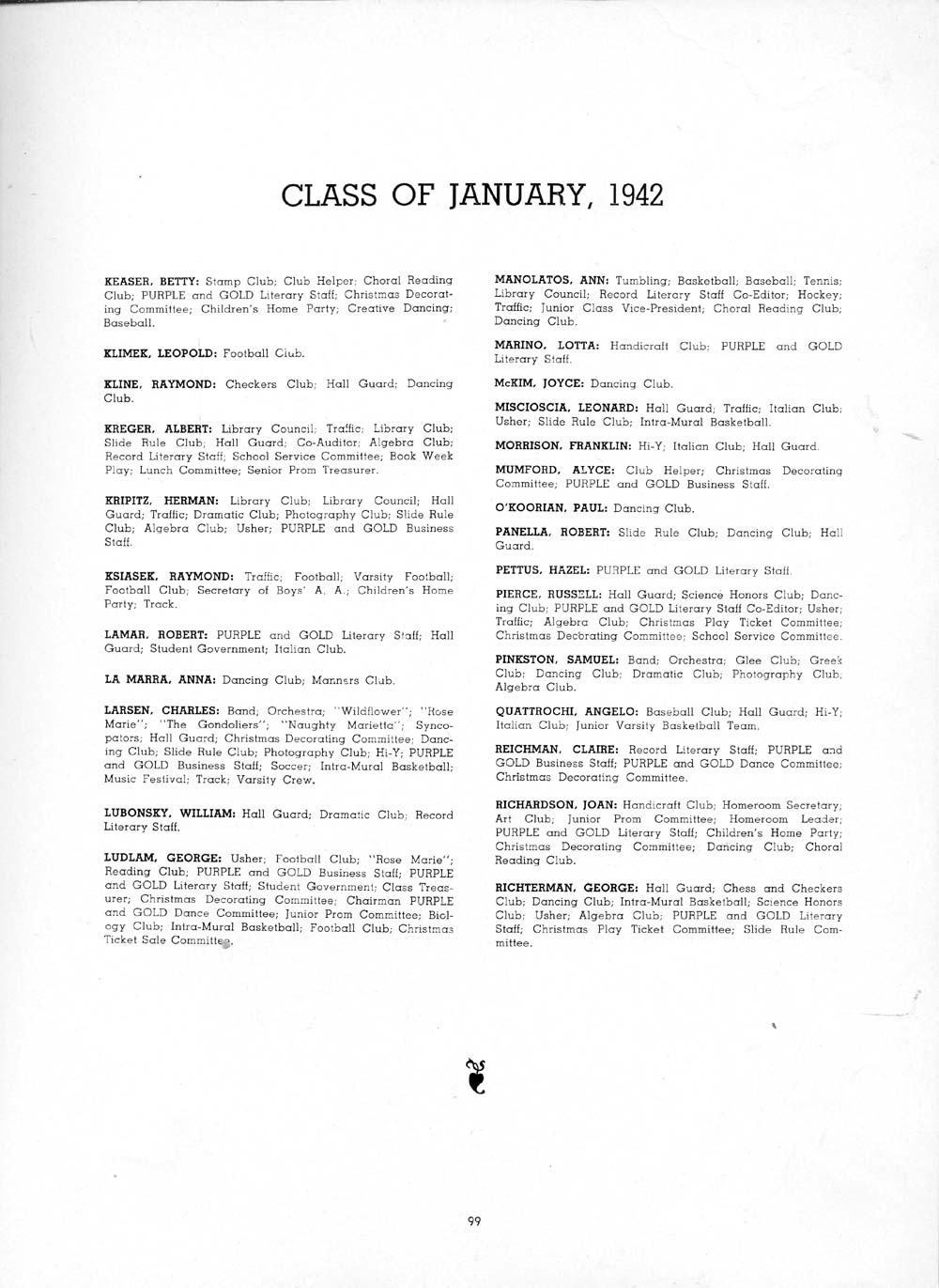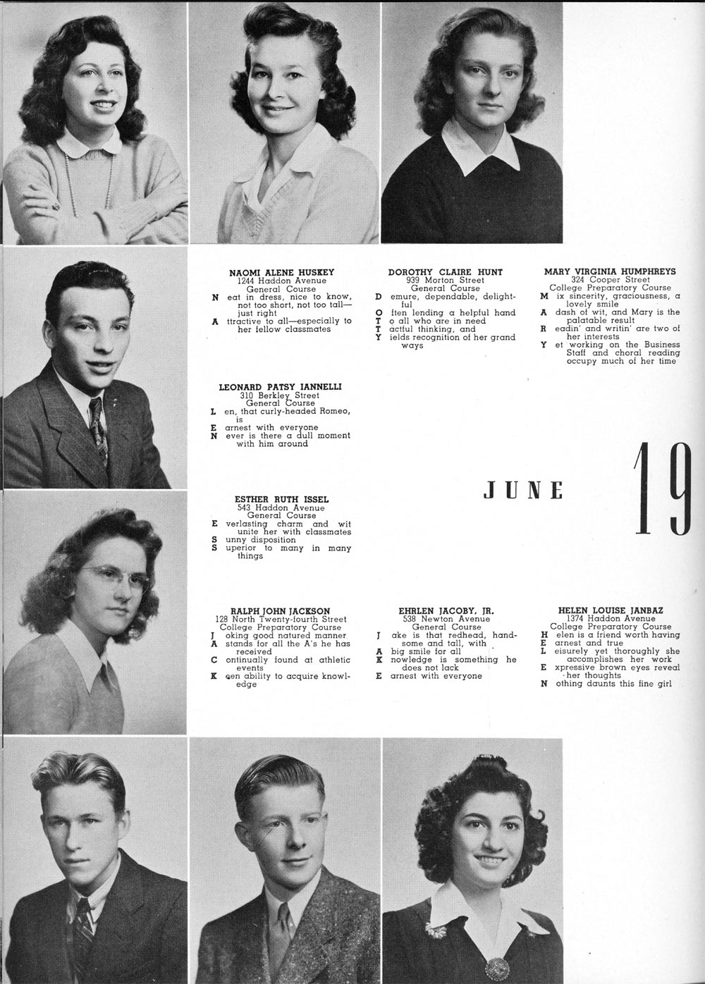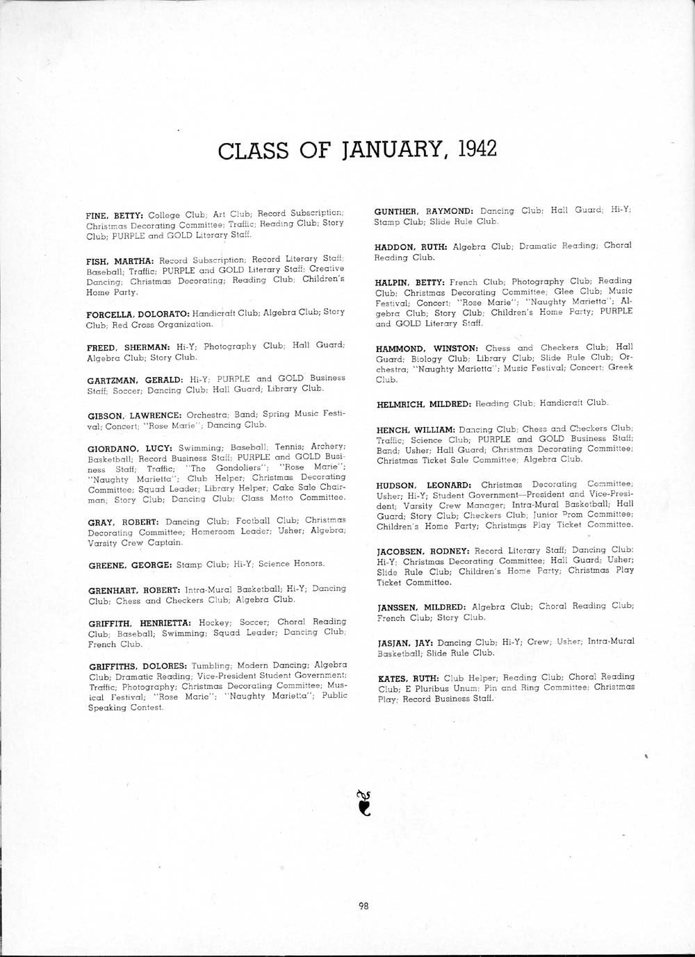 JACK: Slide Rule Club; Hall Guard; Hi-Y Club; Science Honors; Band;