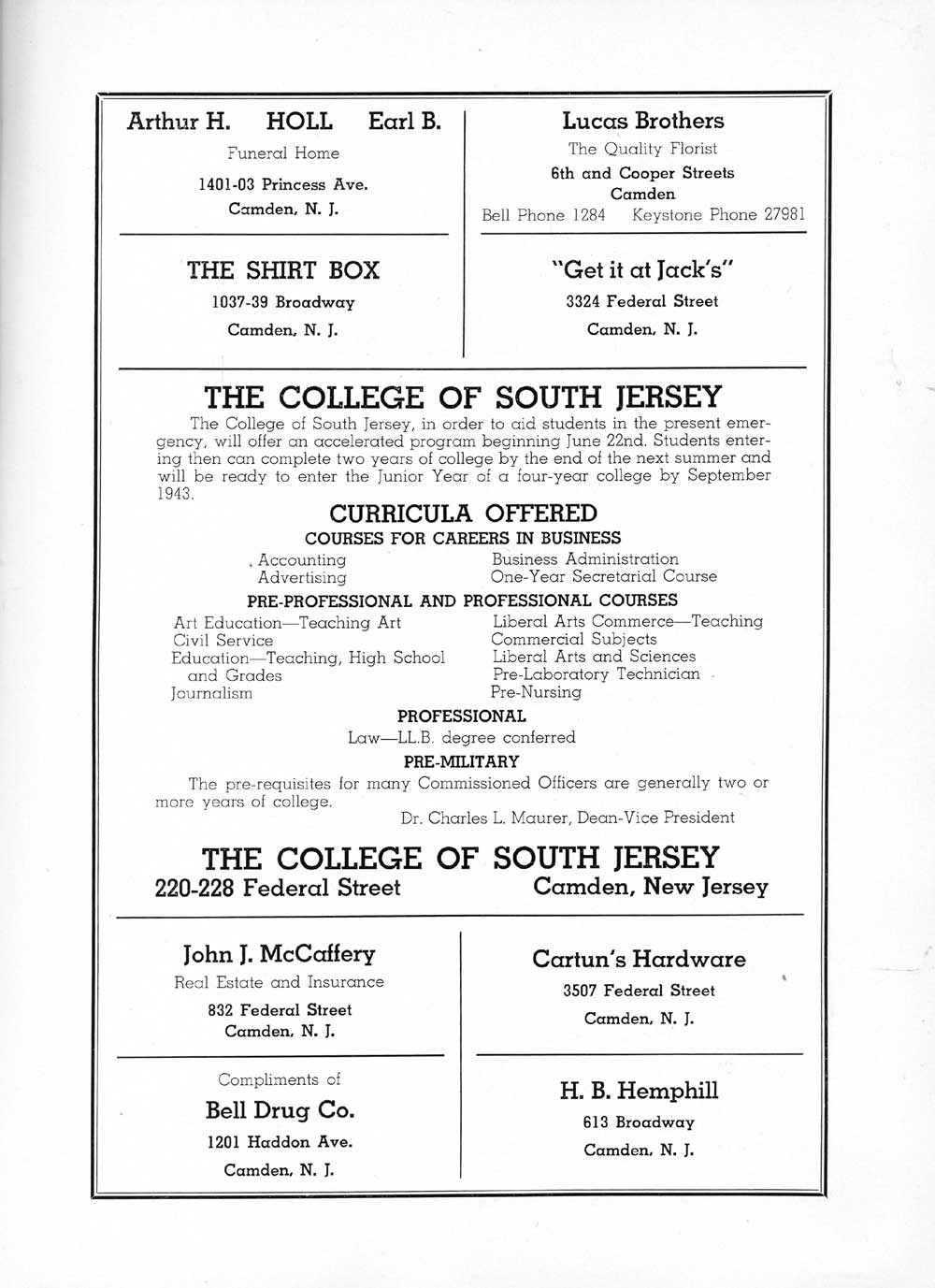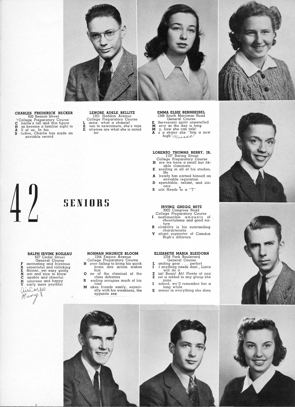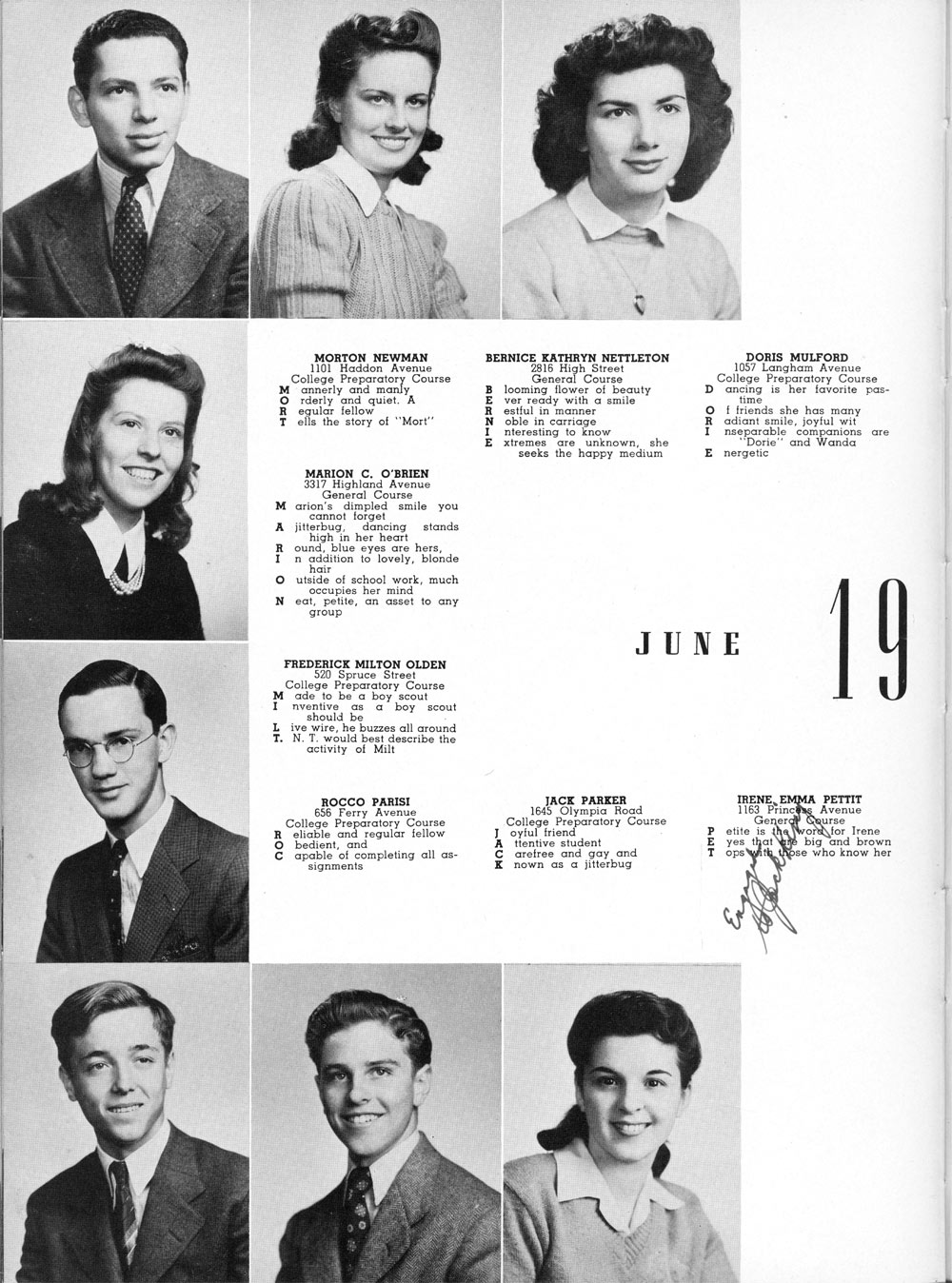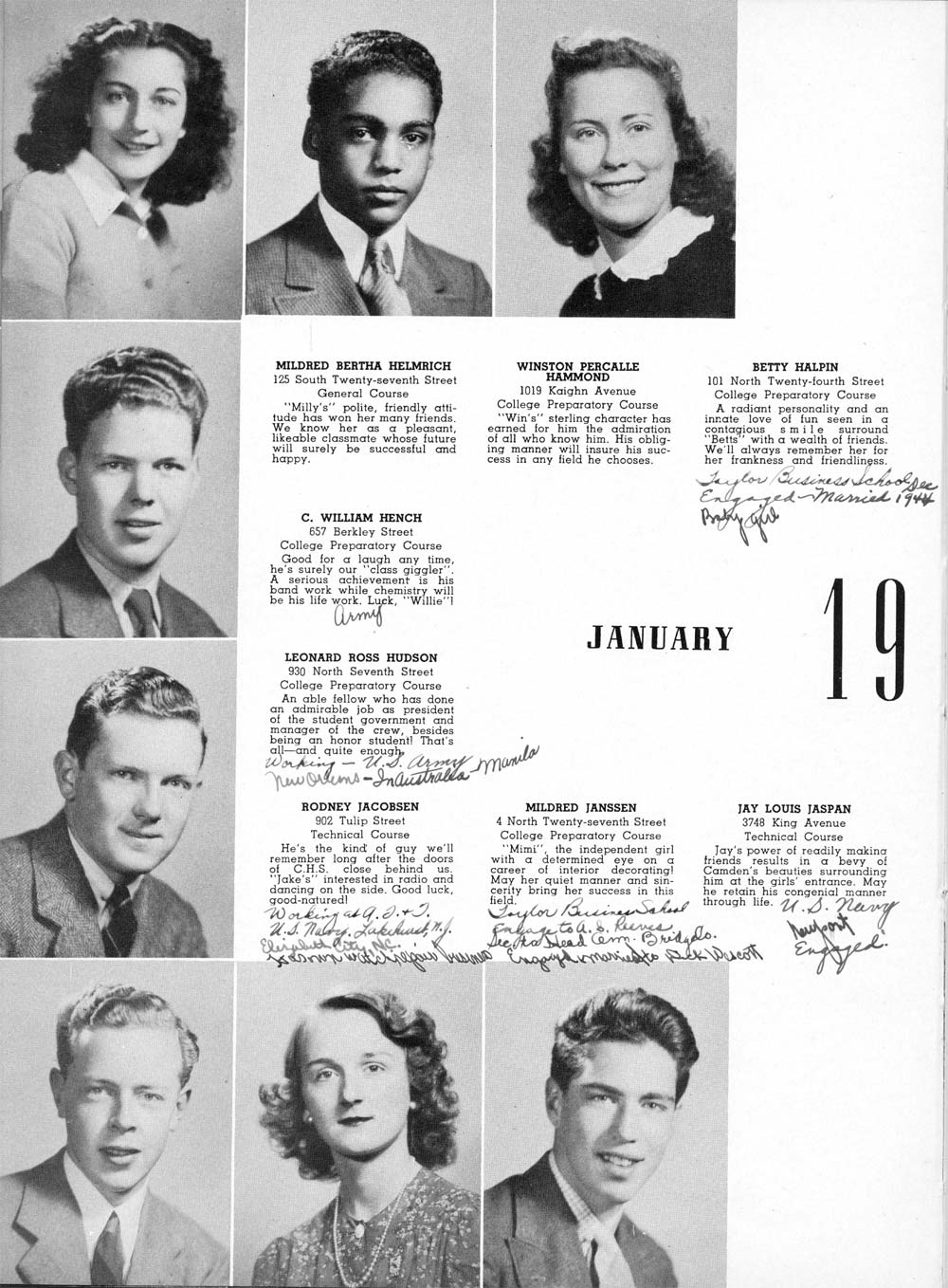 JACK: Slide Rule Club; Hall Guard; Hi-Y Club; Science Honors; Band;