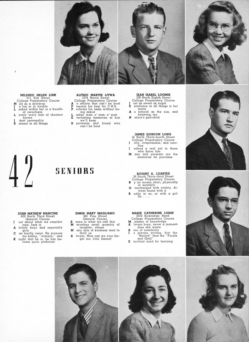 MARIE: Baseball; Hockey; Art Club; College Club; Reading Club;