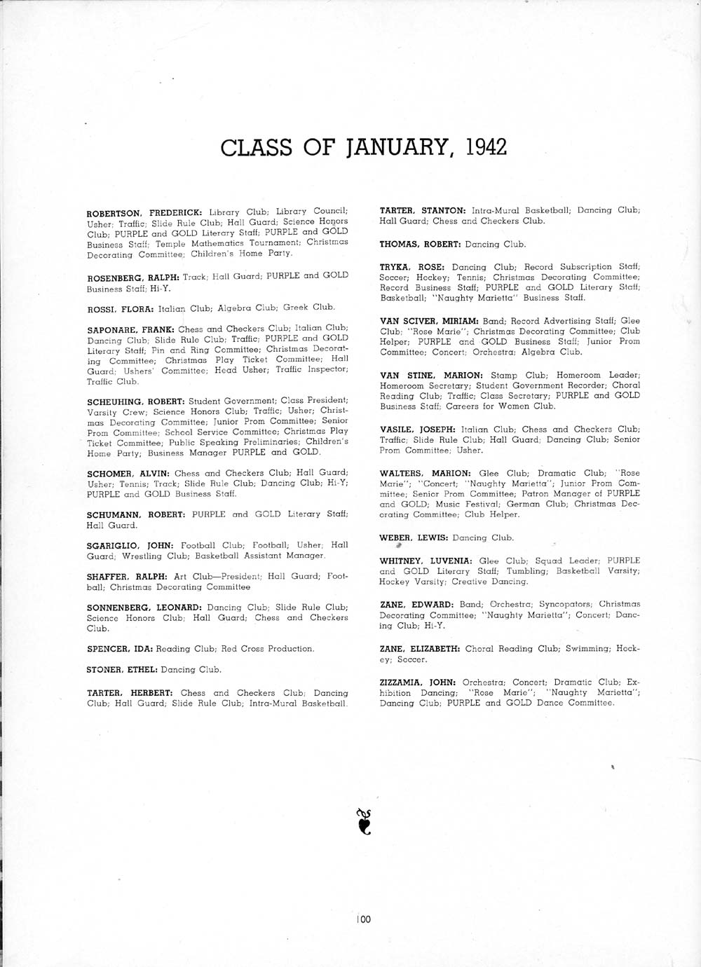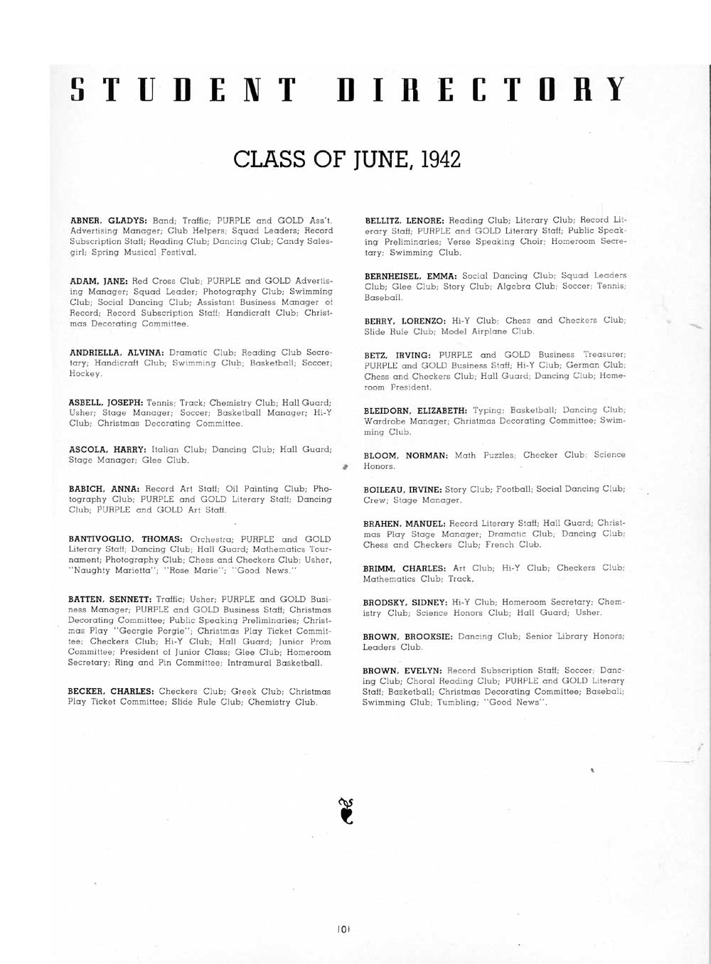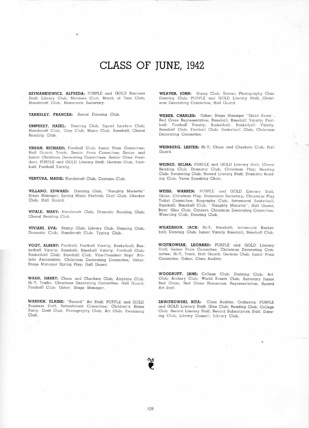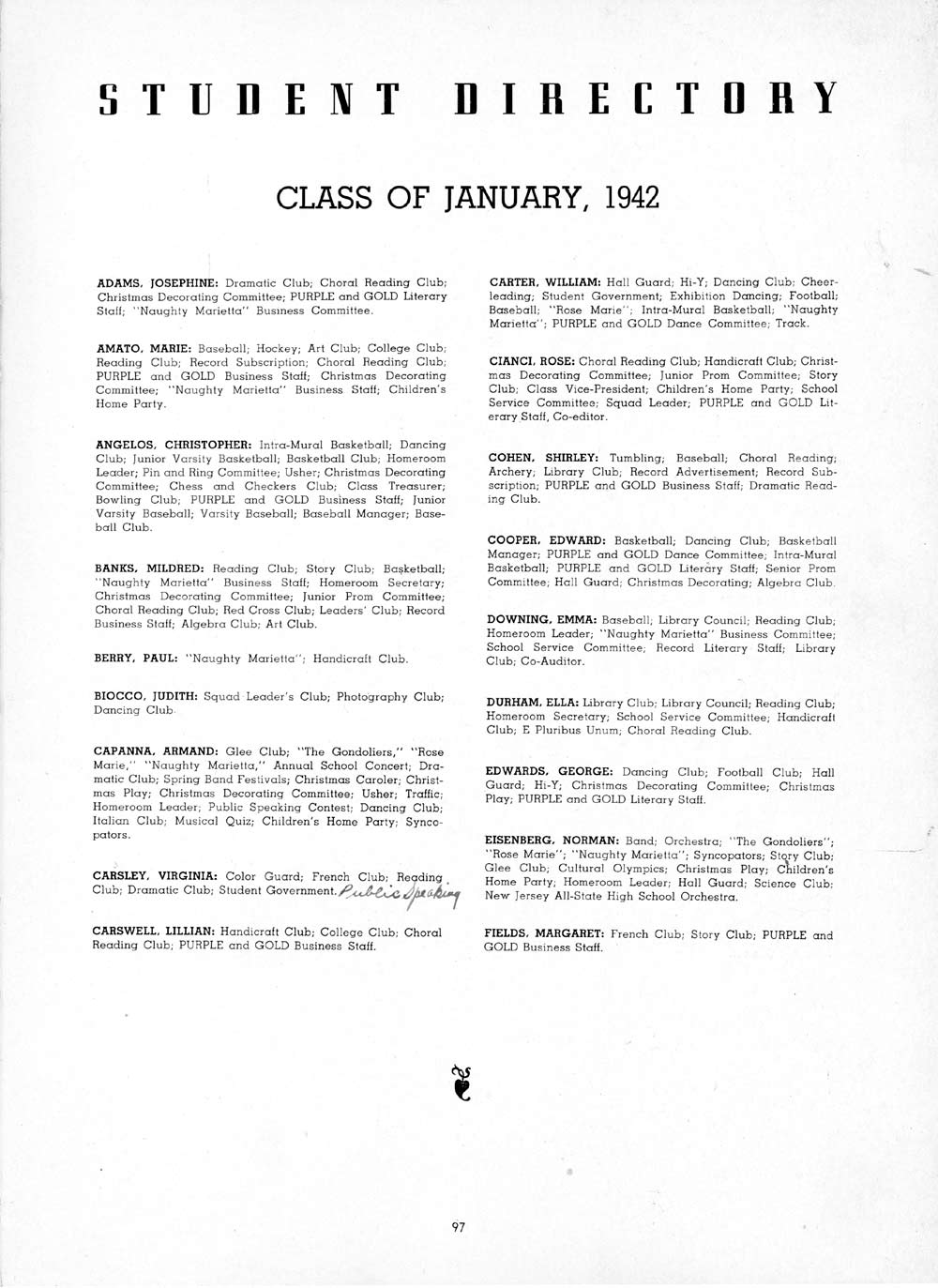 VIRGINIA: Color Guard; French Club; Reading Club; Dramatic Club;