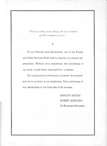 Decorating Committees; Senior Class Presi-dent: PURPLE and GOLD