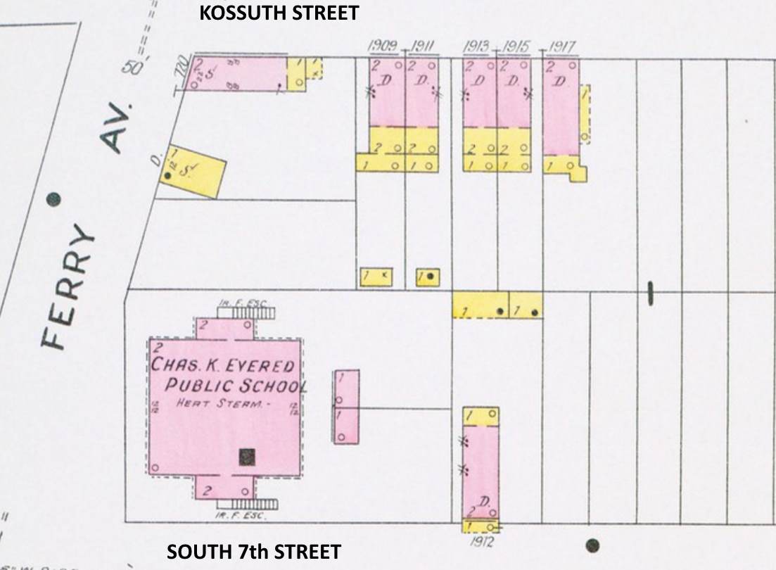 The C. K. Evered School was in the Centervill secion of Camden, which became a part of the city in 1871 when old Newton Township was dissolved and annexed to Camden, creating the Seventh and Eighth Wards. The new territory grew rapidly in population. In 1887 Camden's Board of Education learned that “the Central Avenue Schoolhouse [should] be abandoned, because of the building being unsafe and unfit for school. . .and that a four room school house be built on the same ground; and that the Board sell the old building to the highest bidder. ” Subsequently, the
