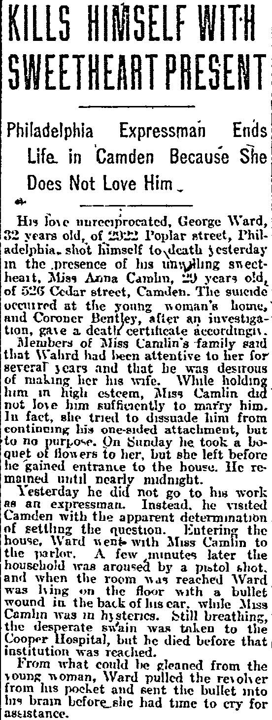 Inquirer * February 18, 1913 Anna Camlin - George Ward - Cedar Street |
